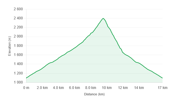 Mit Start beim Parkplatz Eisbrücke südlich von Sellrain sind es etwa 1.300 Höhenmeter bis zum Gipfel. Ein langer Abschnitt führt entlang der Forststraße (Rodelbahn) über die Weidenalm zur Furgges Alm, ehe auf gut 1.900 Metern Höhe das alpine Gelände erreicht wird. Dieses ist zum Glück großteils mäßig steil, sodass man nicht direkt mit der Nasenspitze am Hang klebt.