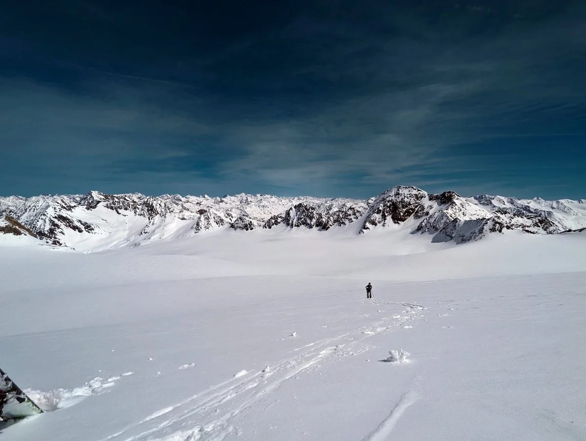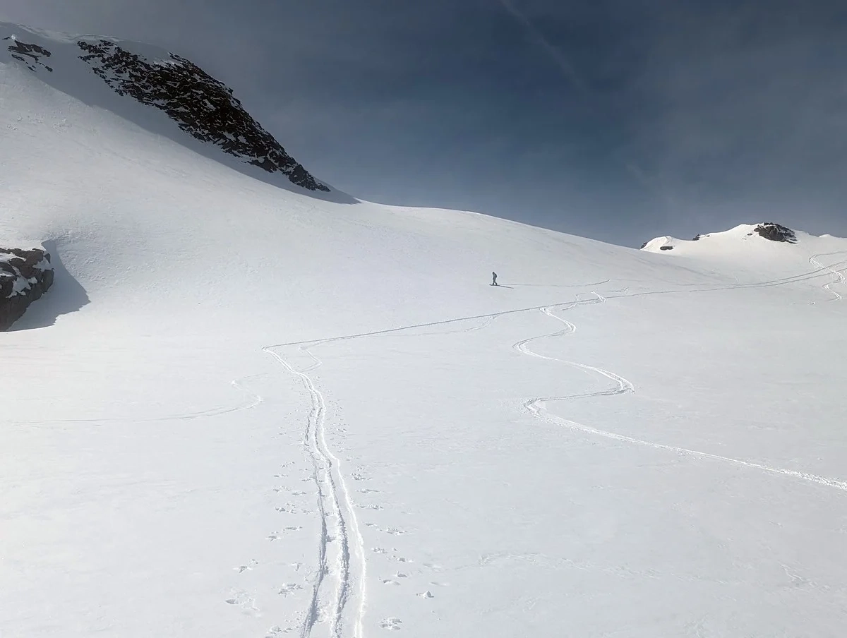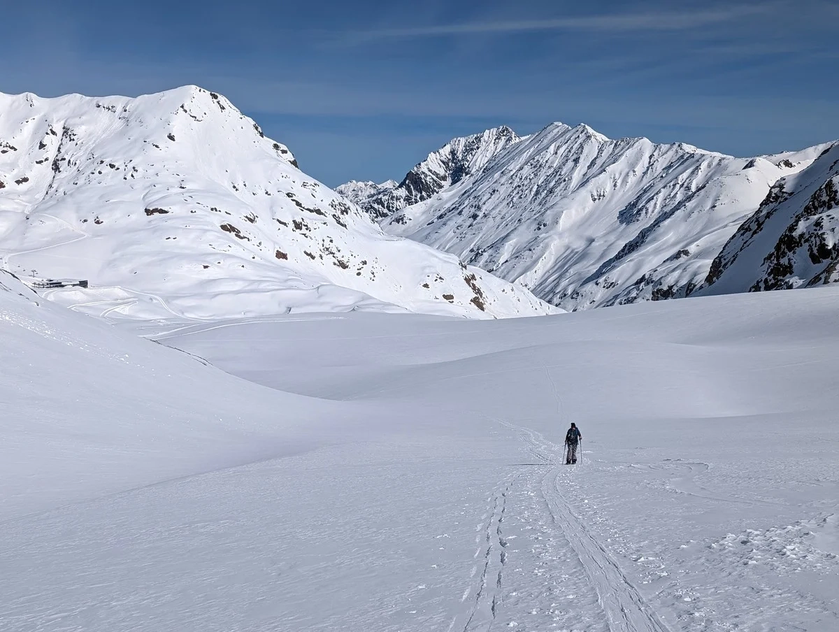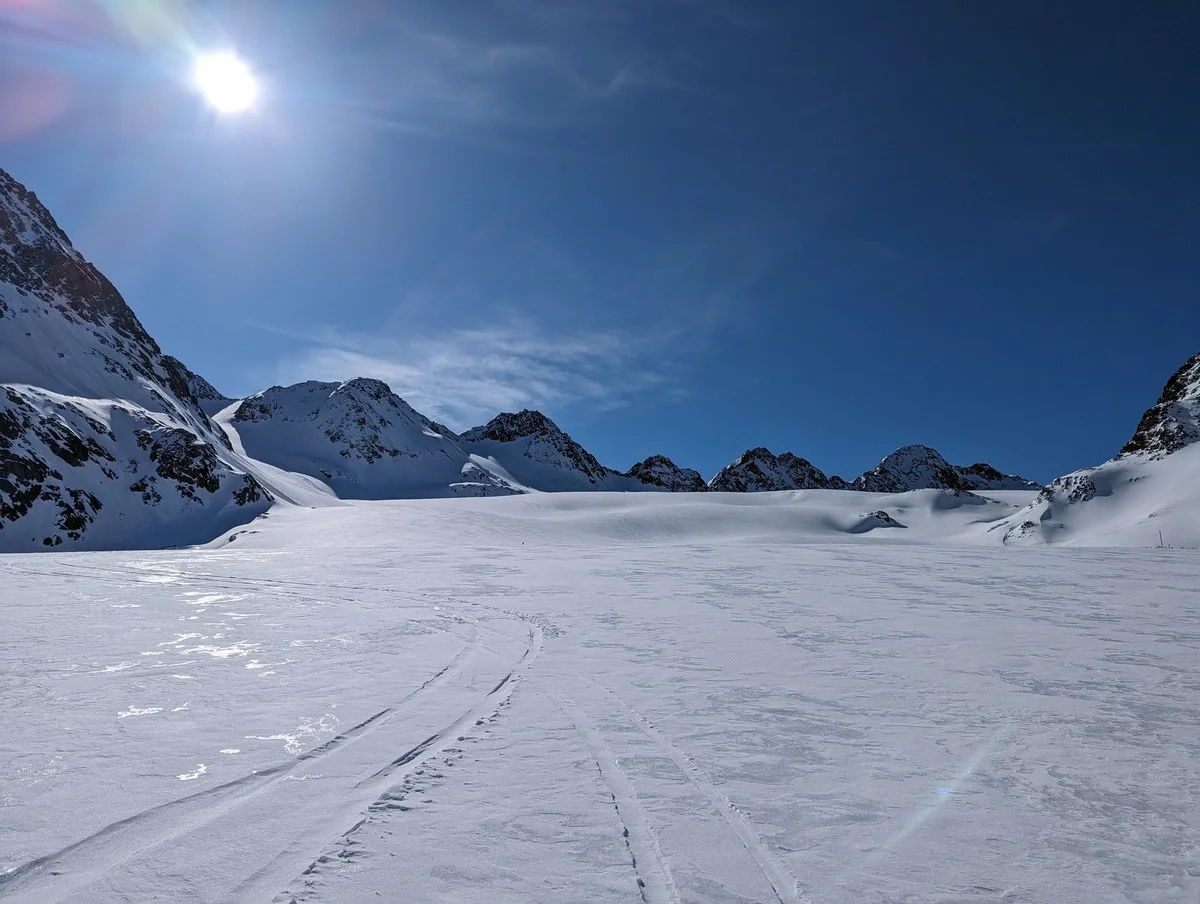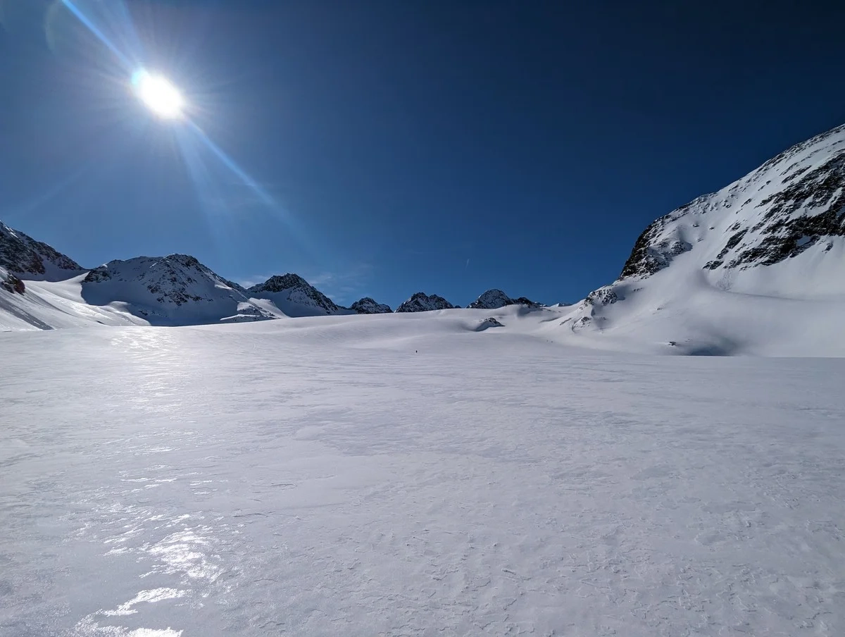 Bei Gondelunterstützung durchaus auch für Unerfahrene geeignet. Zu beachten ist, dass ihr euch durchgehend auf einem Gletscher bewegt, welcher allerdings bei guter Schneelage bei einer Frühjahrsskitour keine Spaltengefahr beinhaltet.