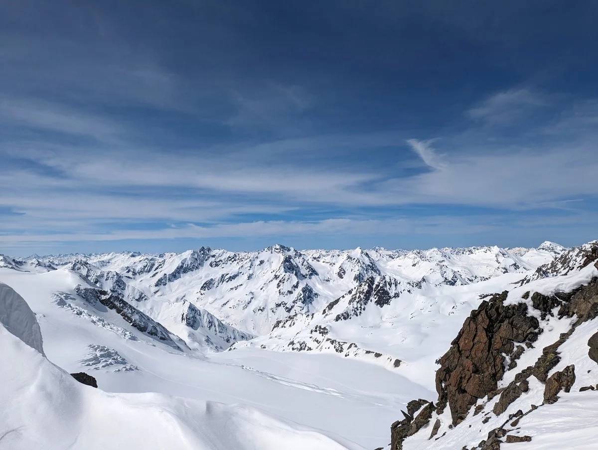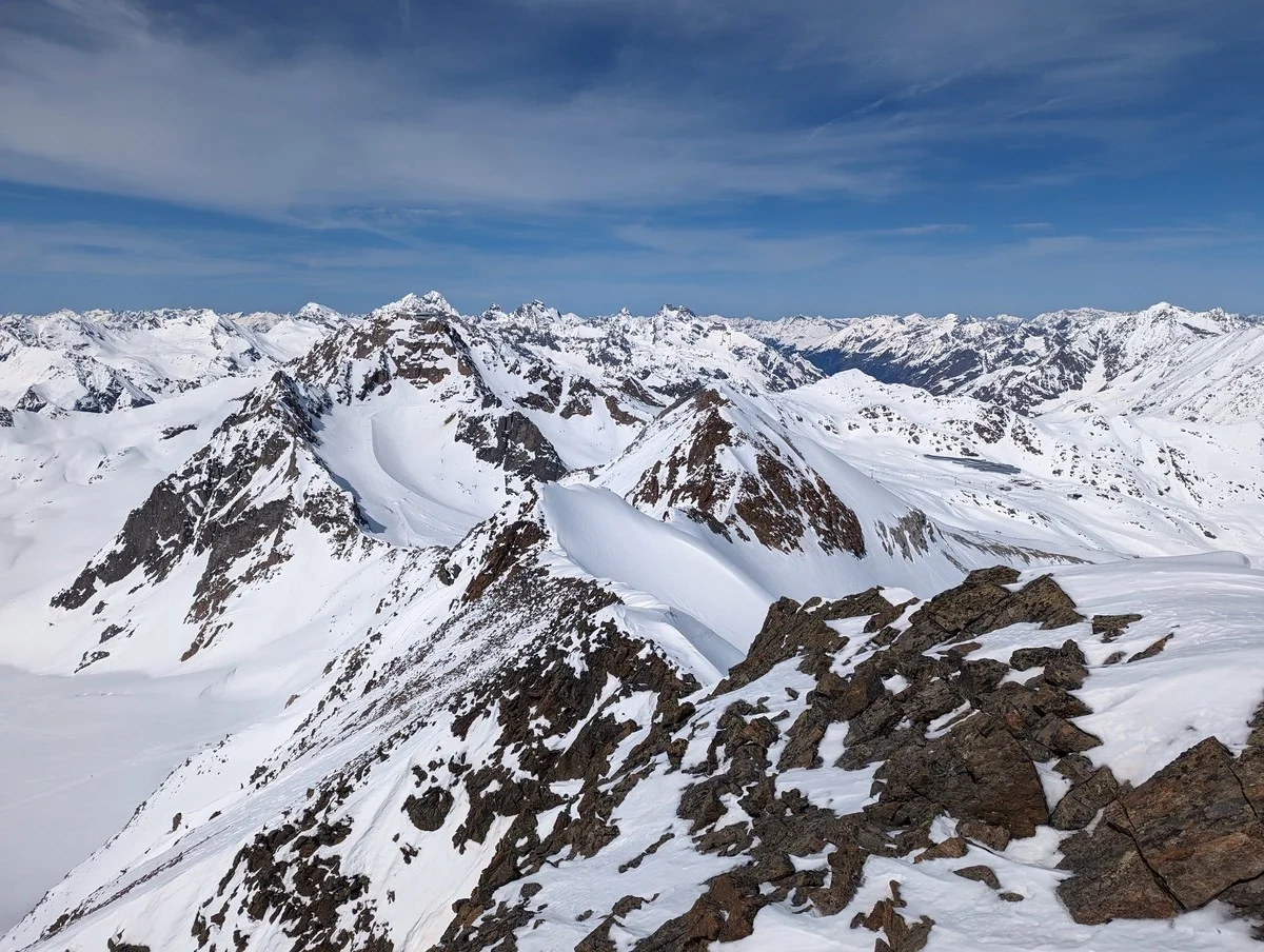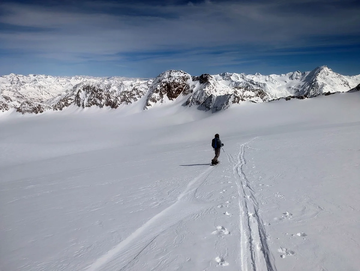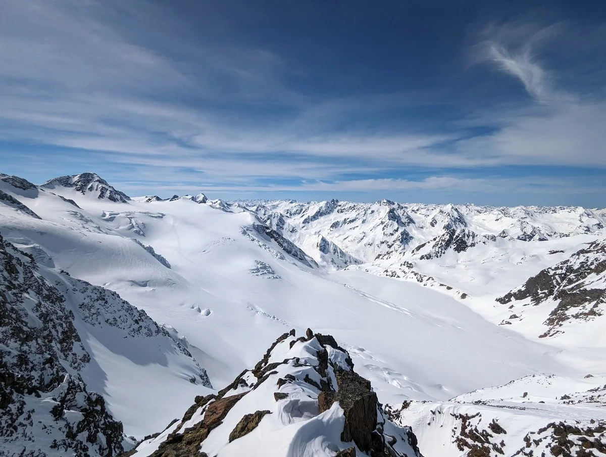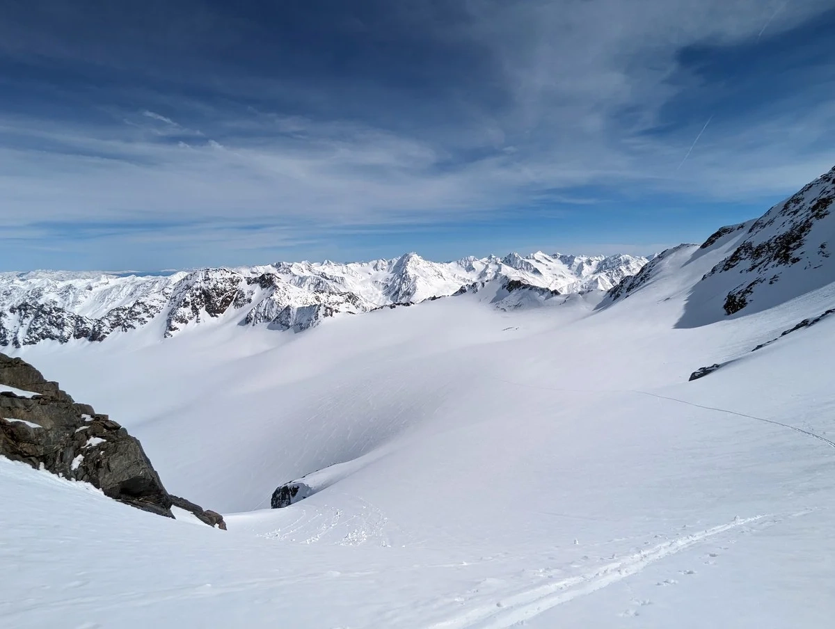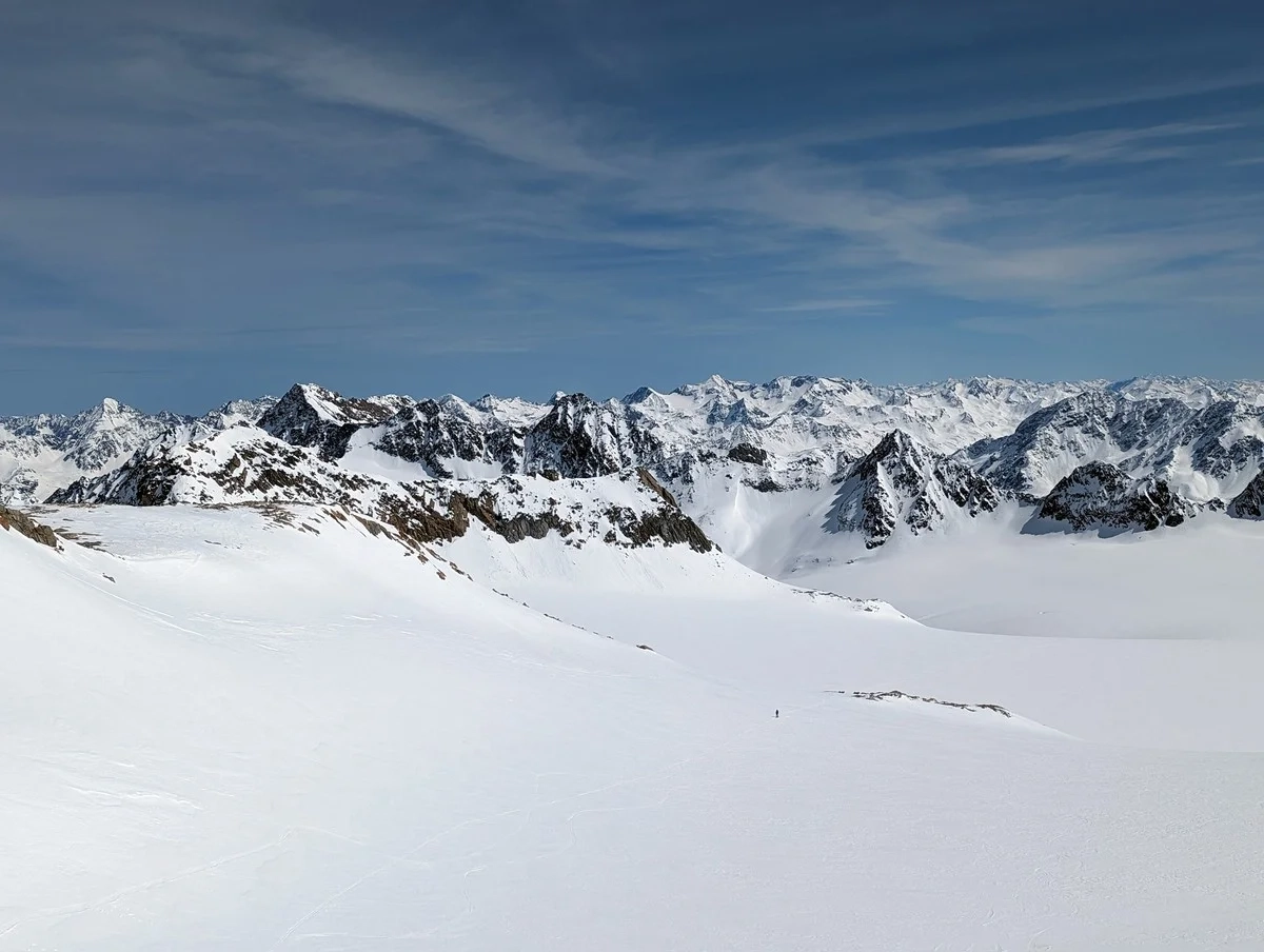 Bei Gondelunterstützung durchaus auch für Unerfahrene geeignet. Zu beachten ist, dass ihr euch durchgehend auf einem Gletscher bewegt, welcher allerdings bei guter Schneelage bei einer Frühjahrsskitour keine Spaltengefahr beinhaltet.