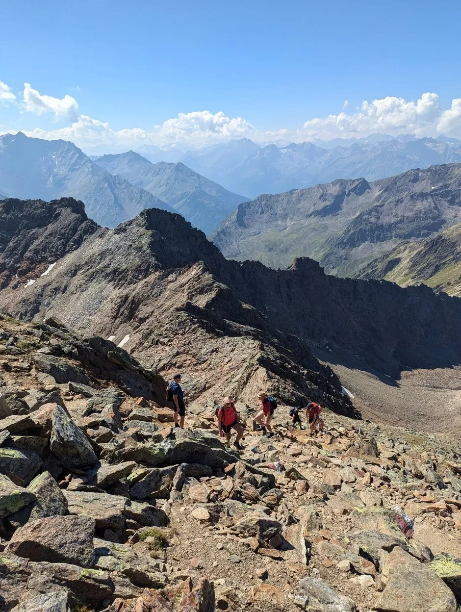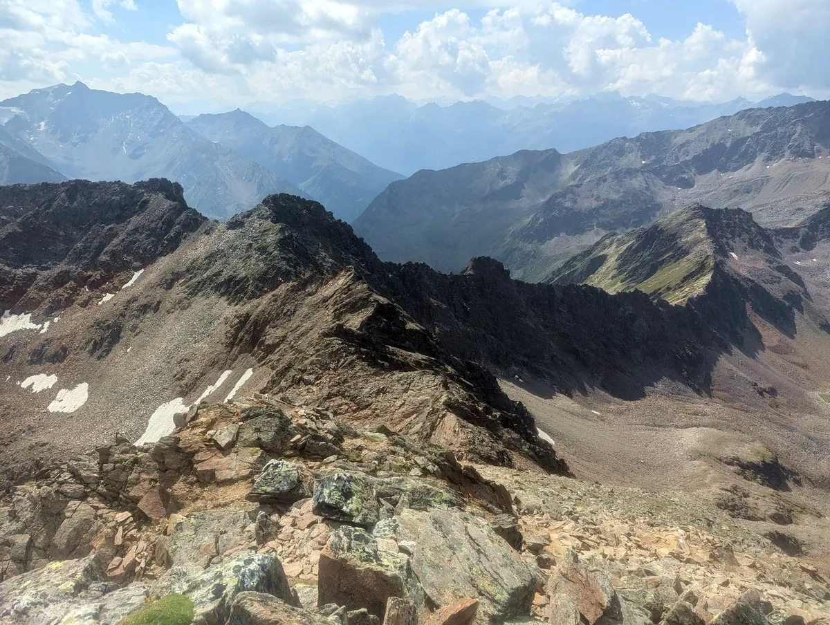- Vom Gipfel des Sulzkogels erfolgt der Abstieg über die gleiche Route zurück zum Ausgangspunkt in Kühtai.