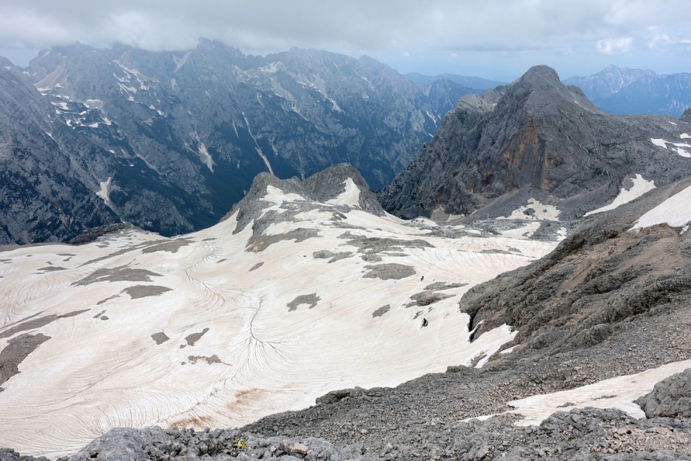 Parkplatz vor Aljazev Dom - am Schotterweg immer der Route ganz rechts folgen (Cez Plemenice na Triglav) - Luknja (1.766 m) - Cez Plemenice - Triglav (2.864) - Mali Triglav - Triglavski dom na Kredarici (Triglavhaus) - Pragerweg - Aljazev Dom