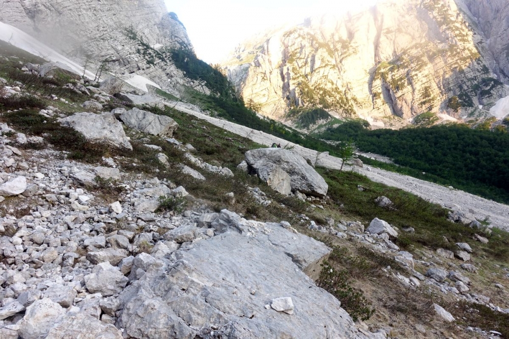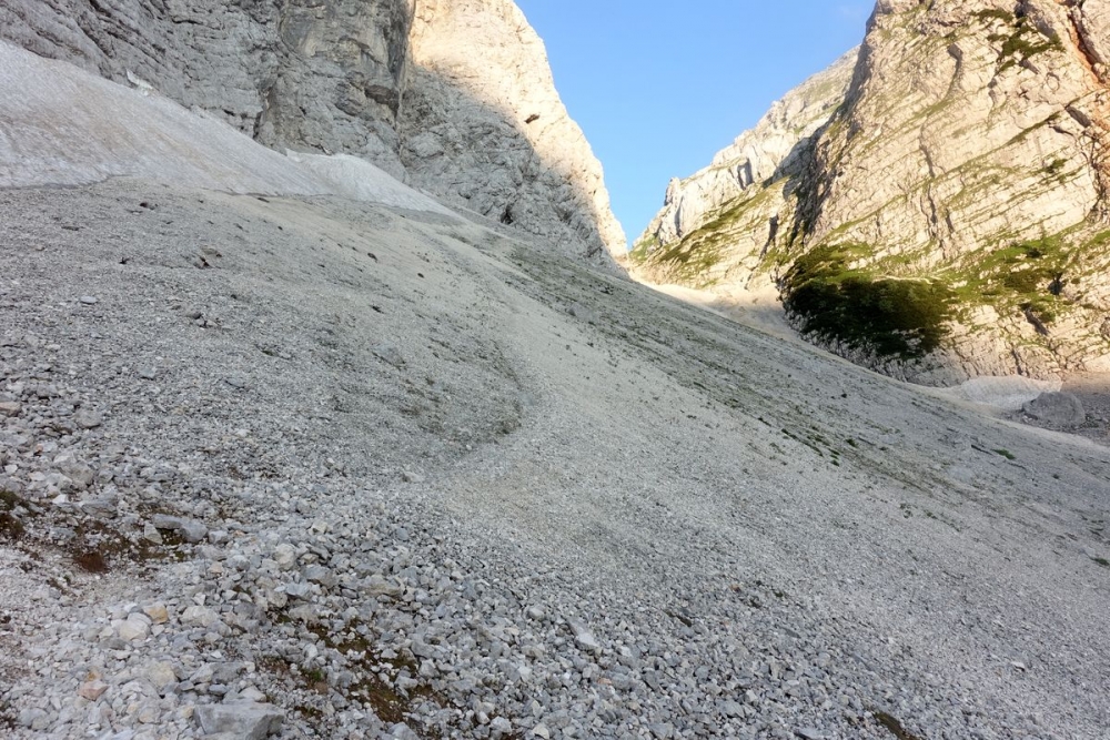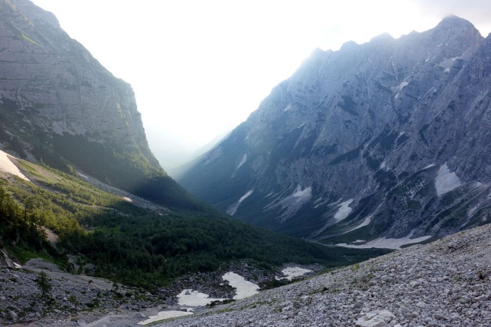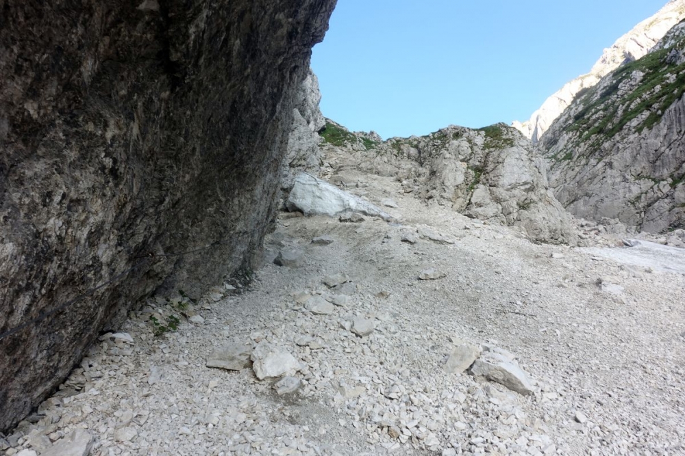 Bergschuhe oder für Sportliche auch Trailschuhe. Im Frühsommer können Altschneefelder die Tour erheblich erschweren. Ausreichend Verpflegung, denn eine Einkehr ist erst beim Abstieg im Triglavhaus möglich.