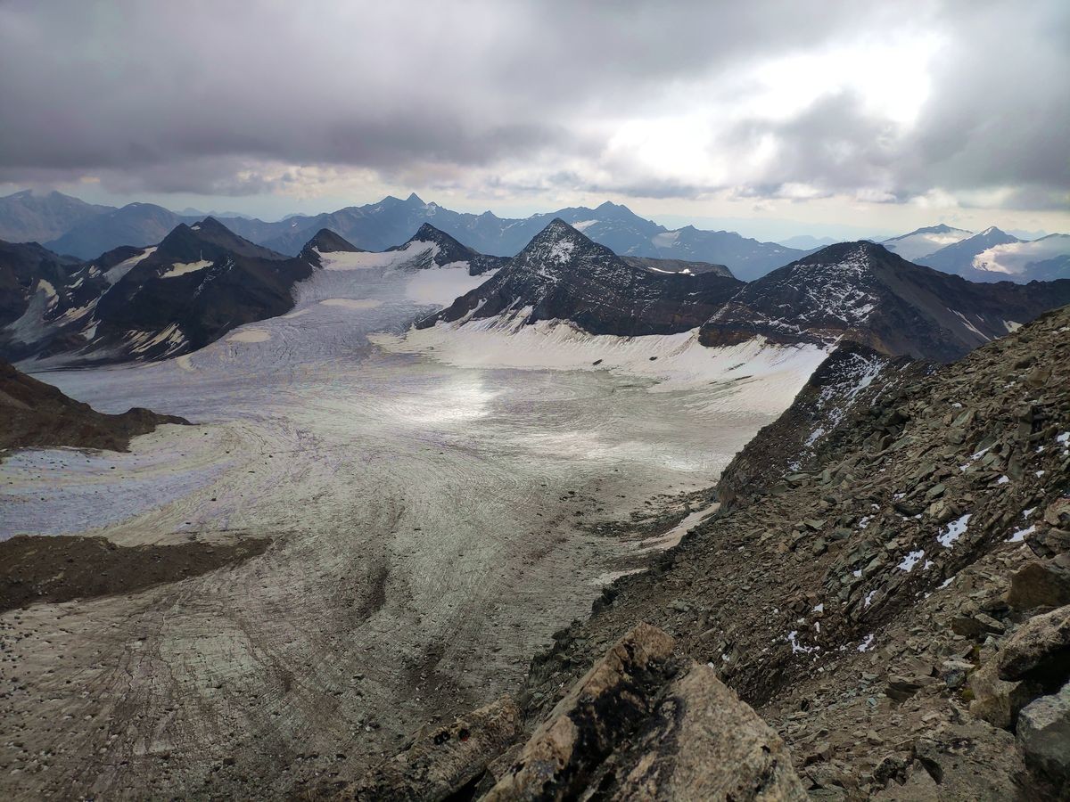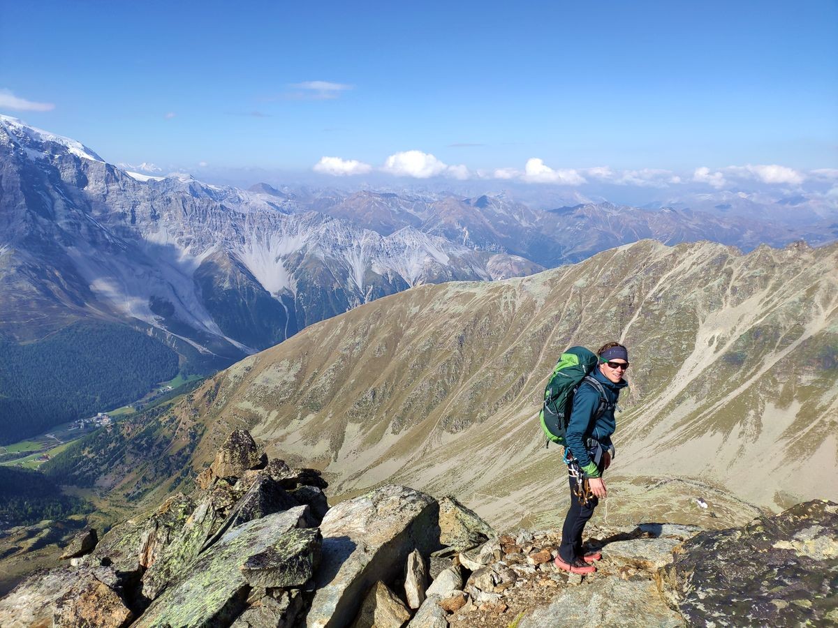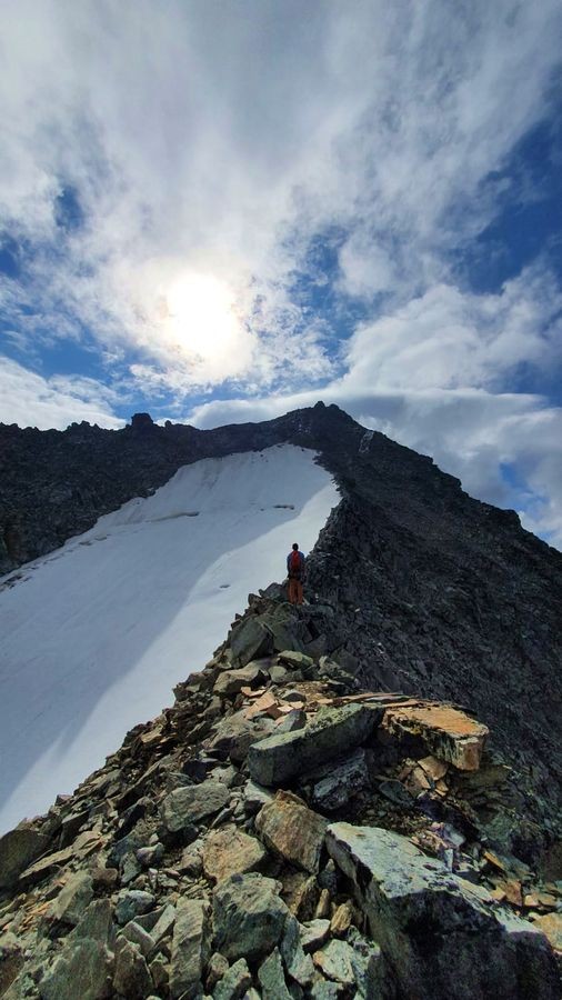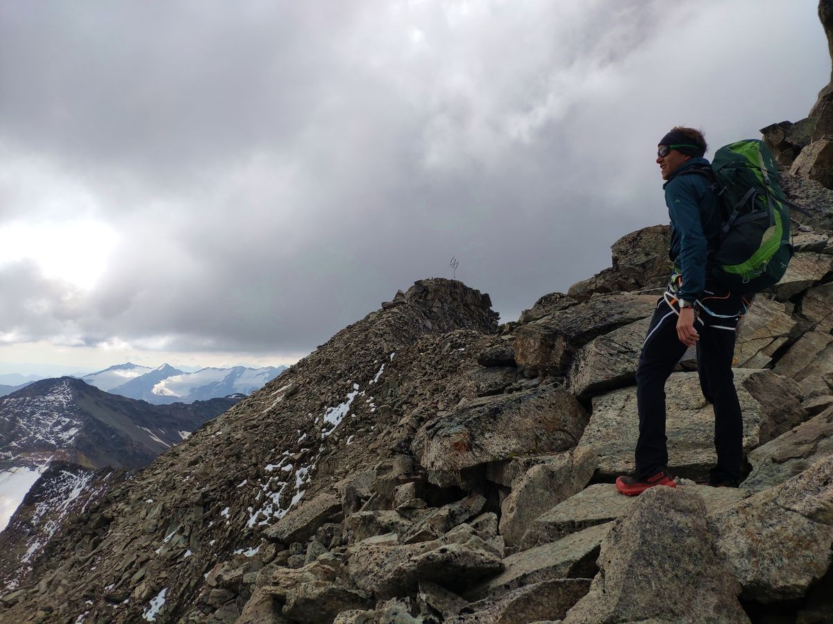 Der rund 700 Höhenmeter lange NW-Grat führt von der Düsseldorfer Hütte auf die 3.543 Meter hohe Vertainspitze.