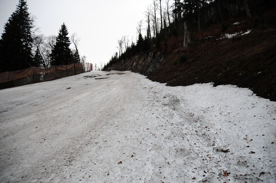Als ich die Bergstation erreichte, kam ich auf die glorreiche Idee, den bisschen Schnee auf der schwarzen Piste zu nutzen um auf dem Hintern sitzend bergab zu rutschen. Und das war so richtig geil. Es gab zwar immer wieder grüne Stellen an der Piste die mich zum Stopp zwangen aber schlussendlich hatte ich den Abstieg vom Gipfel bis ins Tal in gut einer Stunde hinter mir. Und wie richtig schnell es beim Rutschen wurde, seht ihr am Besten selbst in den Videos.