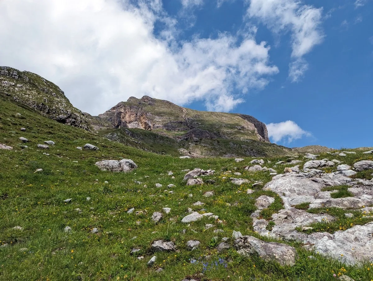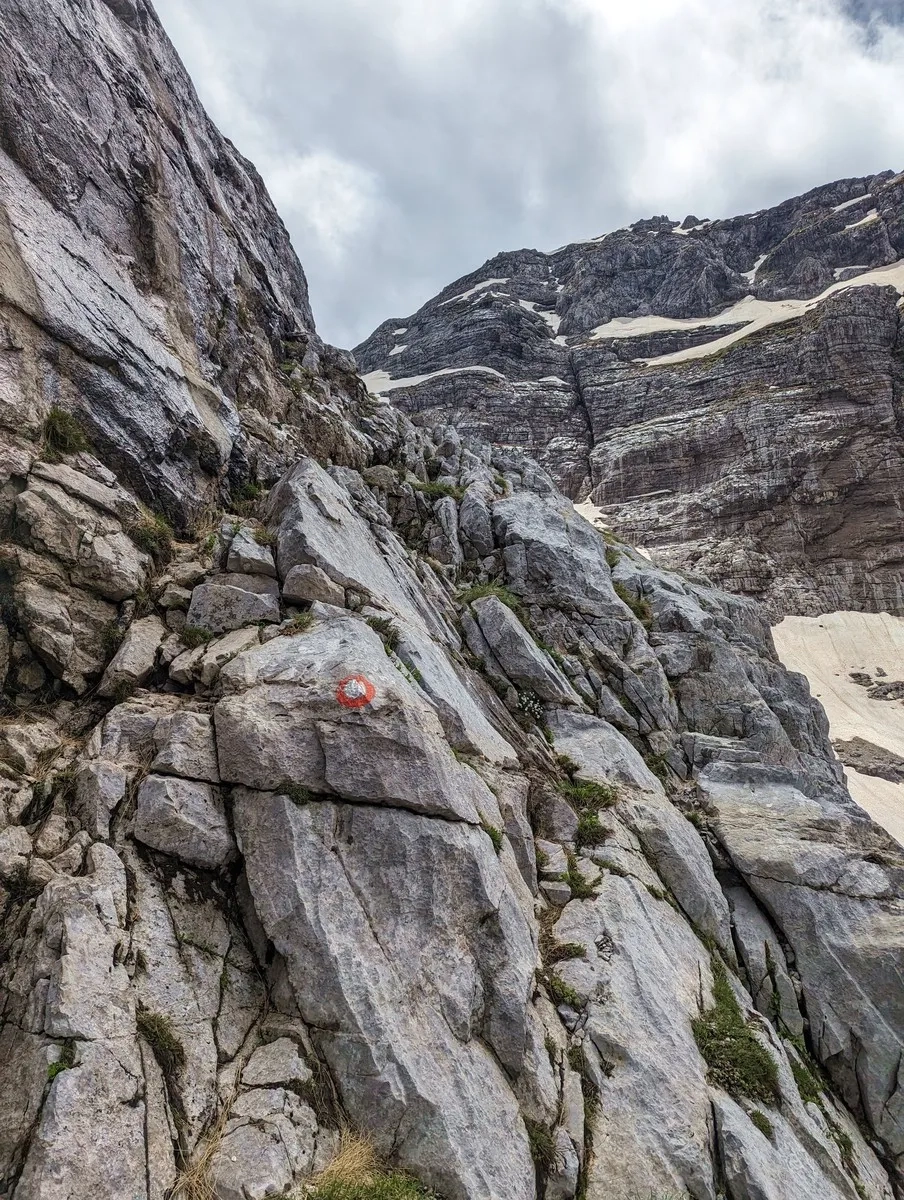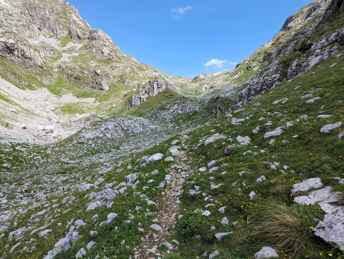 • Nun nach links queren und über einen felsigen Pfad mehrere hundert Höhenmeter auf montenegrinischer Seite bergauf bis auf etwa 2.400 Metern Höhe.