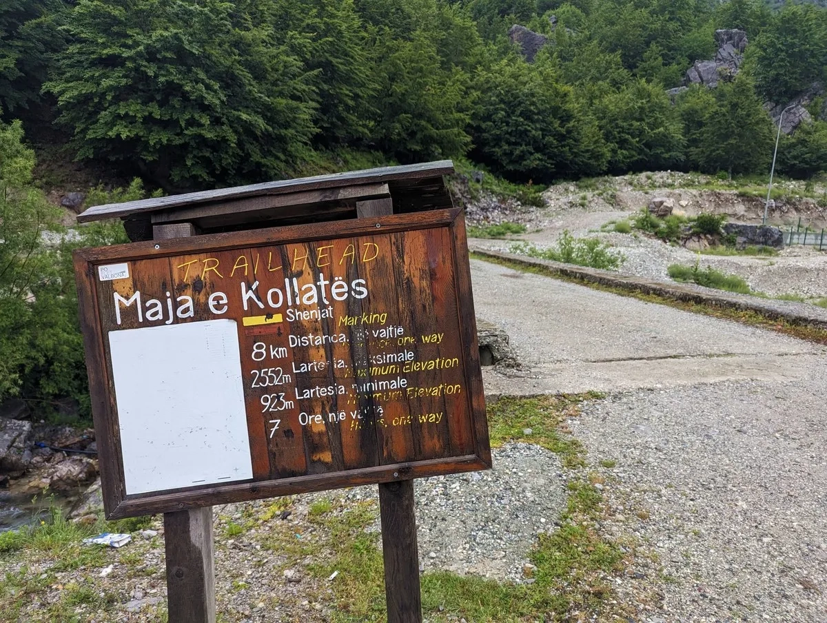 • Start kurz vor Valbonë (Valbona) bei einer großen Beschilderung mit Hinweisen zur Strecke auf den Zla Kolata.