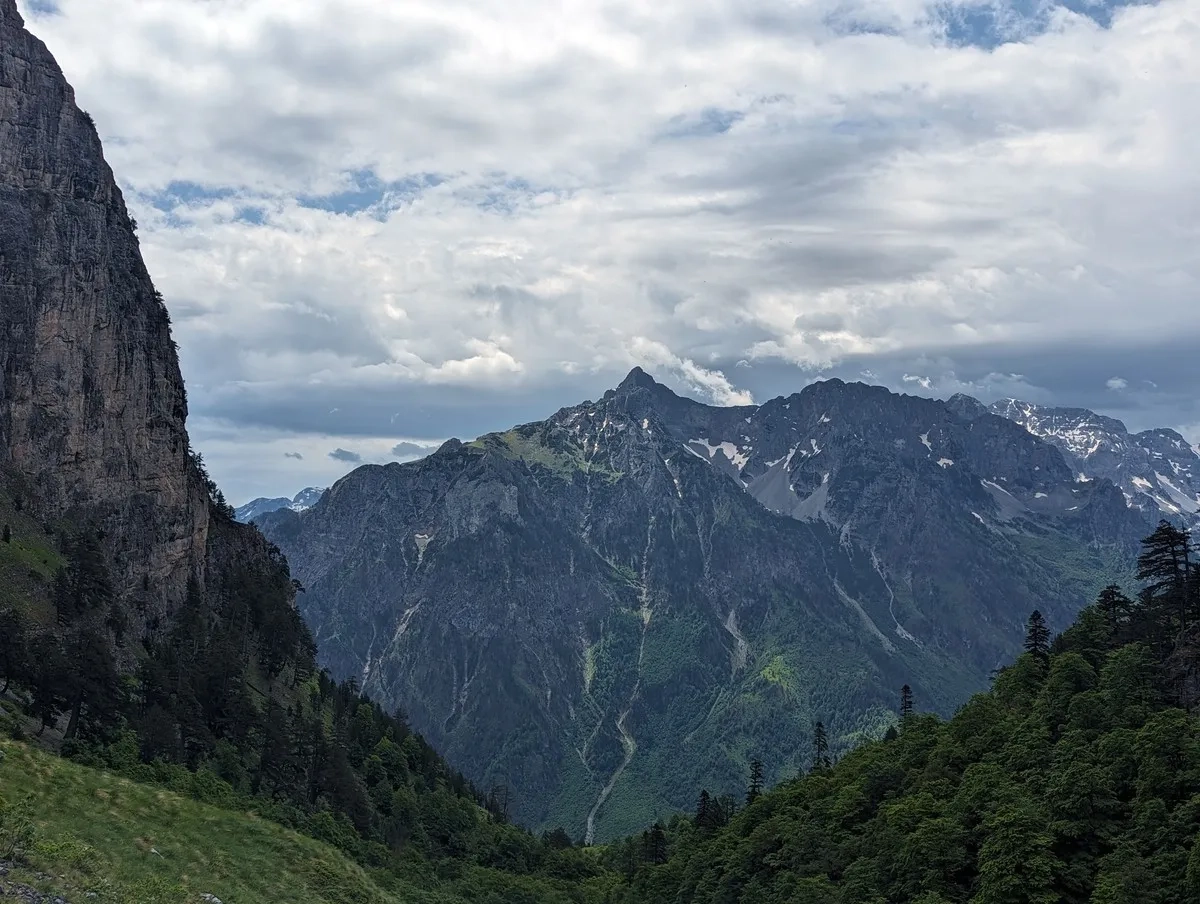 Zla Kolata Wanderung 06: Umliegende Berge sind teilweise noch etwas höher, liegen aber bereits zur Gänze in Albanien.