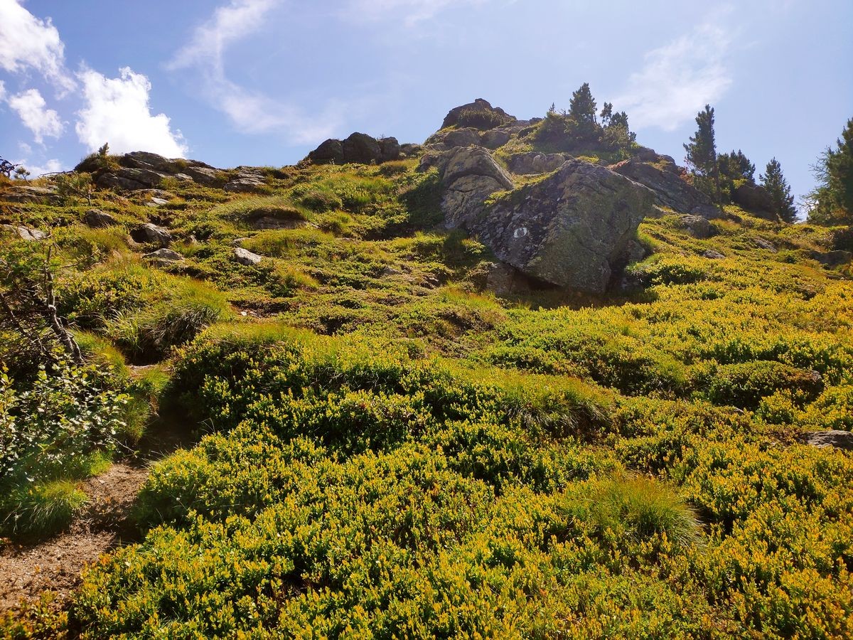 - Ist der Peerwurzgupf erreicht, ist nun die Wegführung deutlich einfacher. Vom Peerwurzgupf geht es links auf markiertem Wege zum Zinkenkogel.