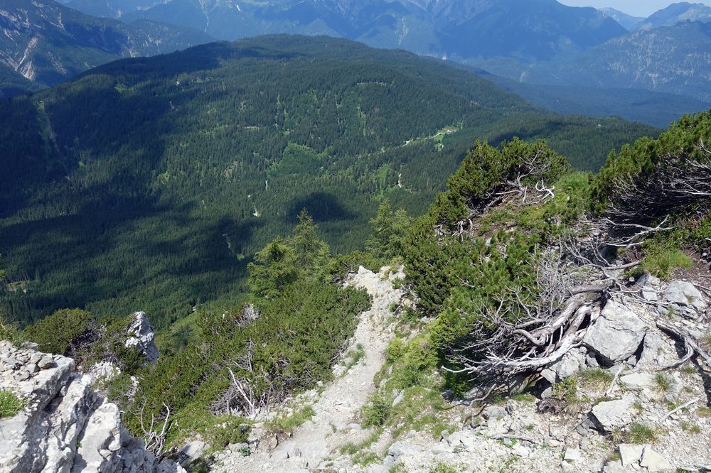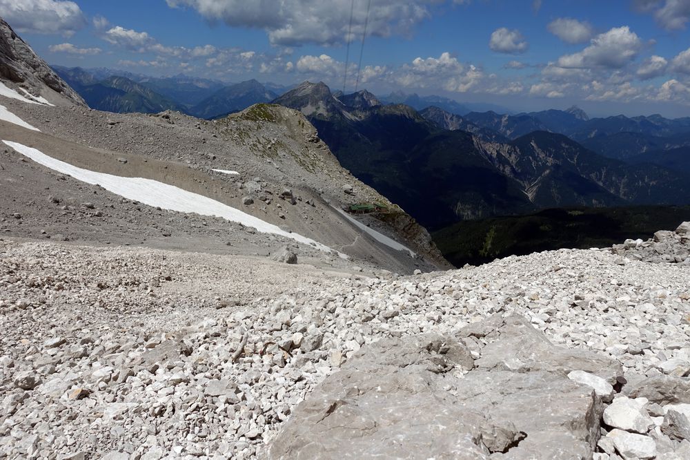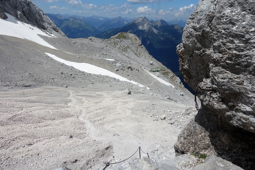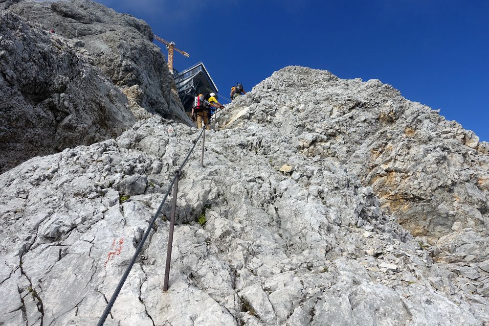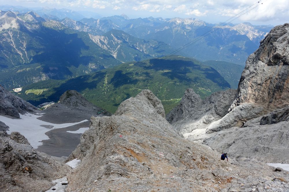 Abstiegsmöglichkeiten gibt es viele. So kann man gemütlich die Seilbahn nehmen oder auch den Aufstiegsweg wieder als Abstiegsroute wählen. Eine weitere Option ist der Stopselzieher, der auch als Aufstiegsroute (zwar eher selten) genutzt wird. Über den Stopselzieher gelangt man zum Eibsee, von diesem man via Bus oder Bahn Hammersbach erreicht oder auch über einen gemütlichen fünf Kilometer langen Wanderweg.