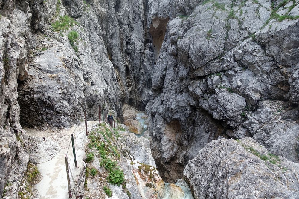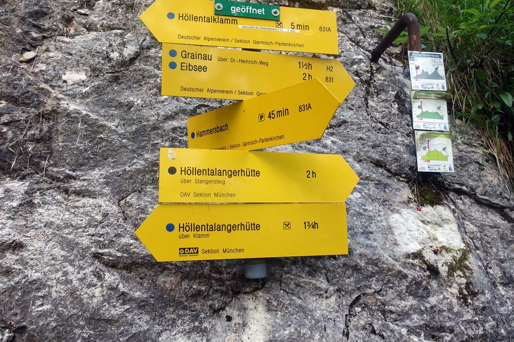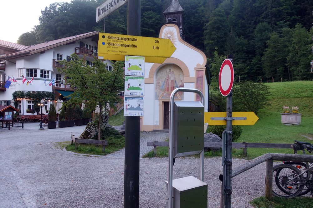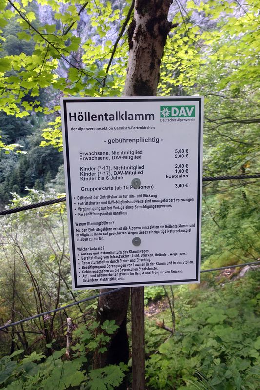 Höllentalklamm (Euro 5 bzw. Euro 2 für Alpenverein-Mitglieder). Meist ist die Kassa in den frühen Morgenstunden noch nicht besetzt. Ehrliche Wanderer können die Gebühr aber in eine Box werfen.