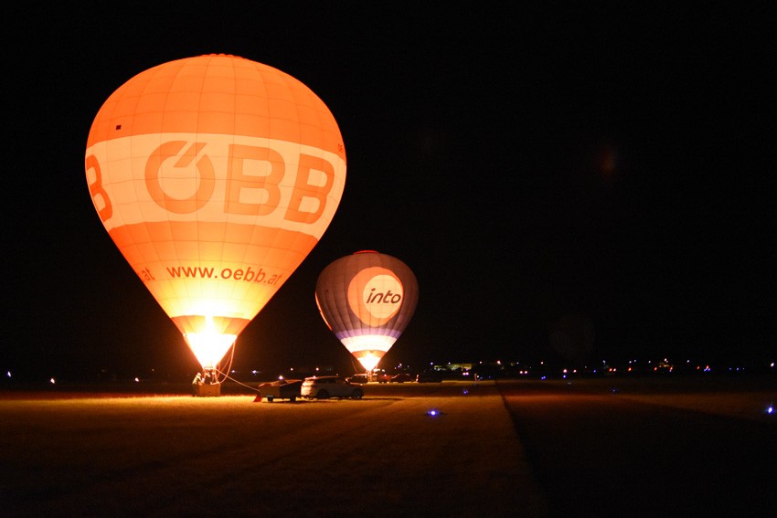 Um die Zeit zwischen Einlass zum Startbereich um 20:00 Uhr und dem Start etwas abwechslungsreicher zu gestalten, gibt es nicht nur passende Musik vom DJ, sondern auch eine kleine Airshow als Vorgeschmack für den nächsten Tag.