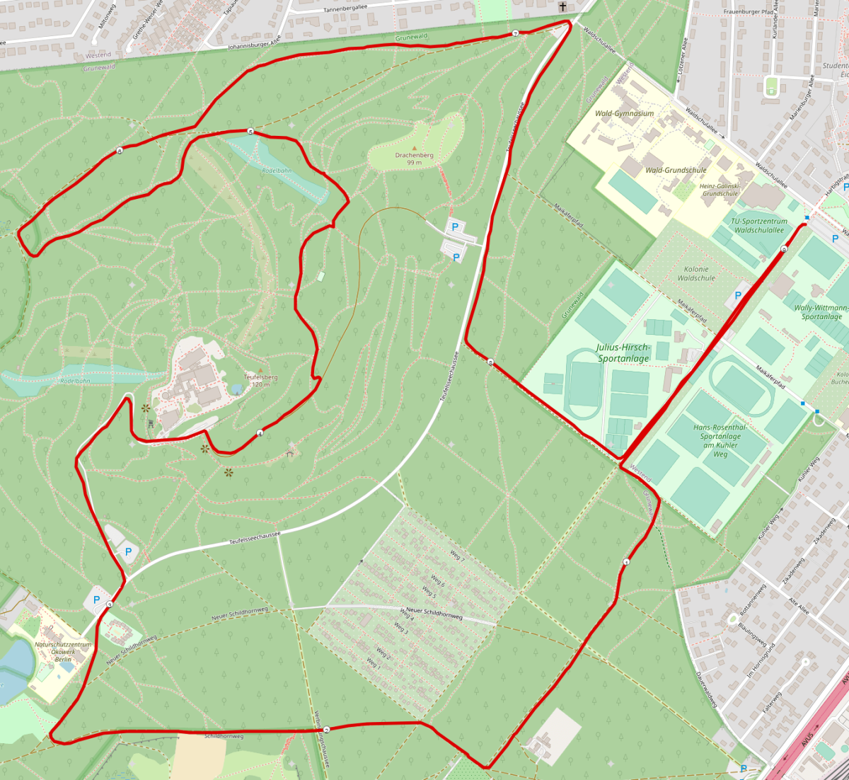 Start und Ziel befinden sich beim Mommsenstadion. Der Hauptlauf führt über 9,9 Kilometer. Die schönsten Kostüme werden prämiert.