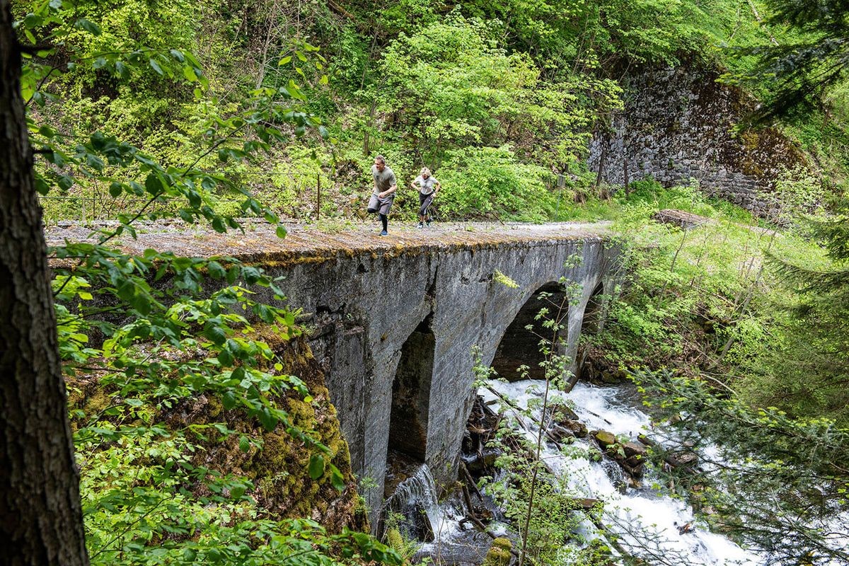 Die traumhafte Strecke besticht durch Vielseitigkeit und Abwechslung. Auf die Herausforderung im Druckstollen mit den 1476 Treppenstufen folgen natürliche Trails, Panorama-Wanderwege und ein Schluss-Kilometer am Ufer der Linth entlang.