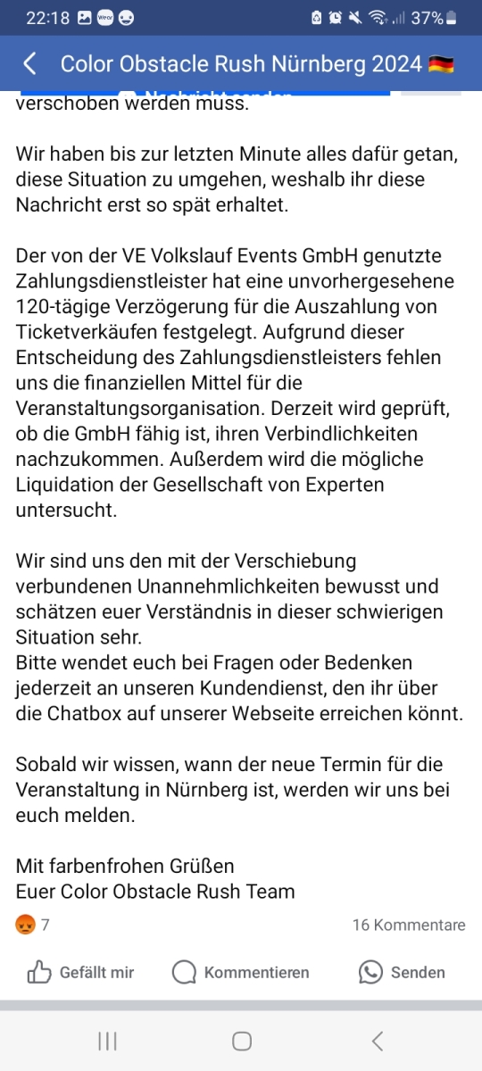 ACHTUNG - wir empfehlen ausdrücklich keine Buchungen bei diesem Veranstalter (VE Volkslauf Events GmbH) vorzunehmen:
