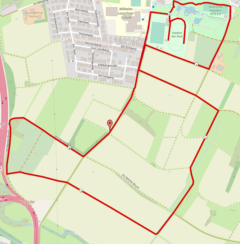 Strecke 1,1 km: Heiligenröder Abendlauf Schülerlauf Strecke