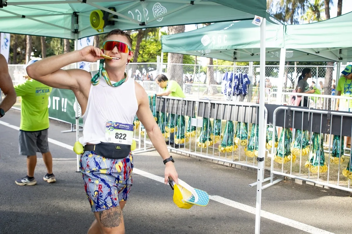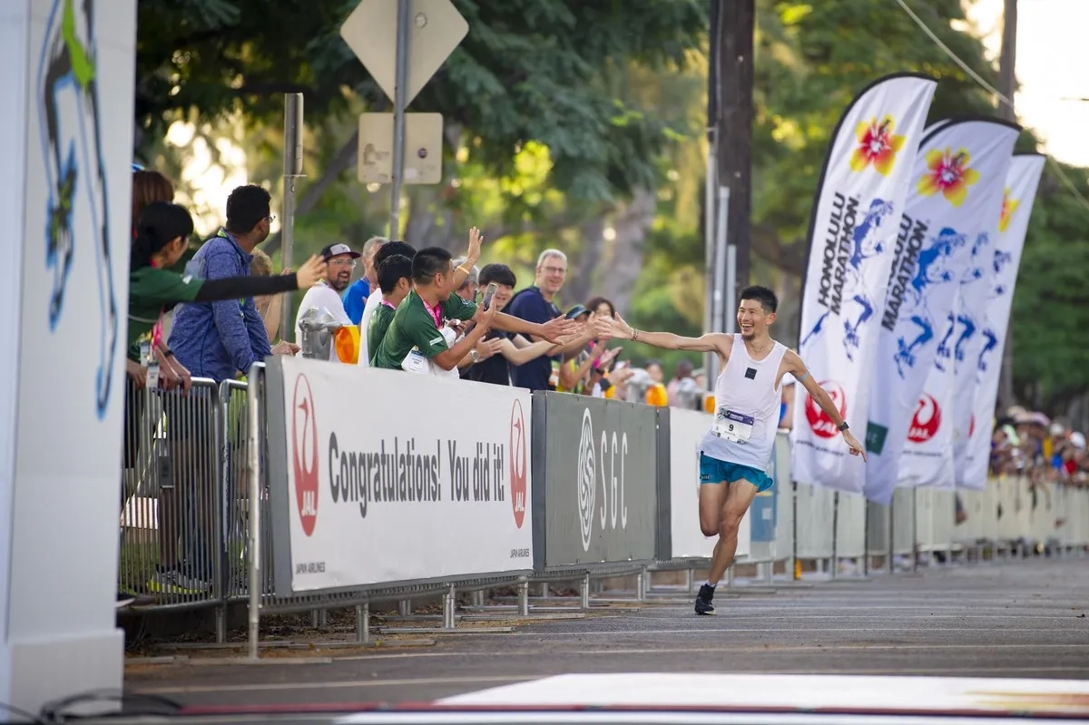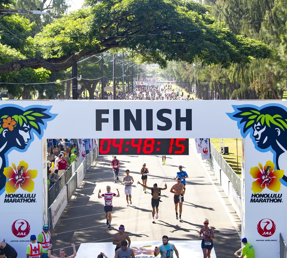The Honolulu Marathon is popular amongst first time marathoners because there is no time limit. We keep the finish line open until the very last person has crossed the line. This is unique for a big city marathon. All finishers get an awesome finishers medal and finisher shirt.