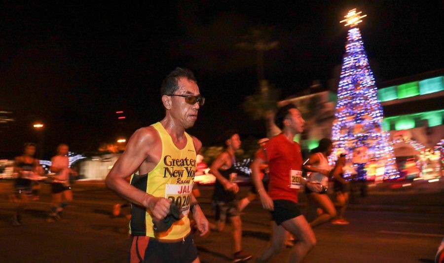 The Kalakaua Merrie Mile is a fun event on the Saturday before the marathon. The run is on Kalakaua Avenue with the finish on the beach with a beach party. There is a professional race after the regular runners have finished, and you can watch professionals run one mile in less than 4 minutes. Photos (c) Honolulu Marathon