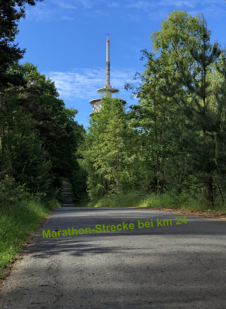 Bei Kilometer 22, hinter dem historischen Forsthaus Winterstein, wo die 30km Läufer zurück nach Friedberg laufen, verläuft die Marathonstrecke rechts auf die Extraschleife über den 518m hohen Steinkopfgipfel. Dieser thront mit seinem Fernmeldeturm weithin sichtbar über das Rhein-Main Gebiet, Wetterau und Taunus.