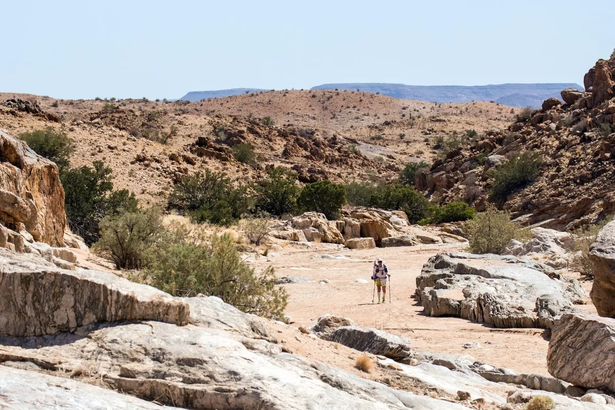 KAEM is a 7 day, self-sufficient race, covering an approximate total distance of 250km. The route is divided into 6 stages and traverses the Augrabies Falls National Park, Daberas and private farmlands. You get the unique opportunity to run and/or hike through varied terrain, from boulder-strewn koppies to sandy river beds, while enjoying wild life and the distinct beauty of the Kalahari Desert. Ranging from 25km to 45km with a long day of approximately 75km, each stage has a set distance. The long day is run into the night, giving you the opportunity to also experience the African night life while being out on the route. The rest day camp is located on the banks of the Orange River which allows participants to have a dip in the water.