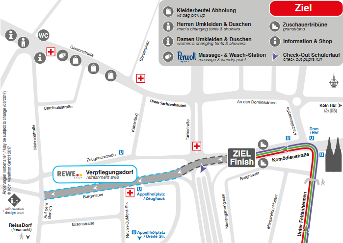 Zielschluss bzw. Zeitlimit beim Köln Marathon: 06:00 Stunden (netto)