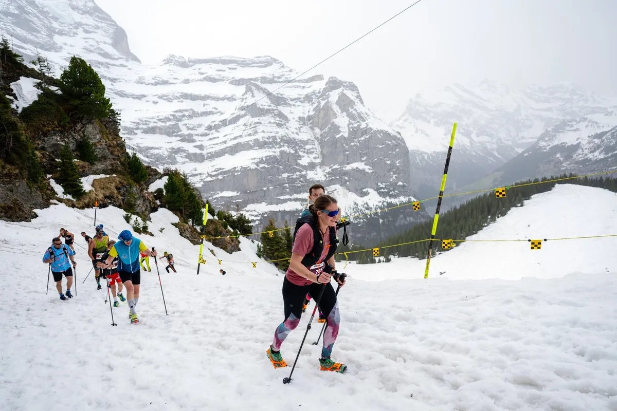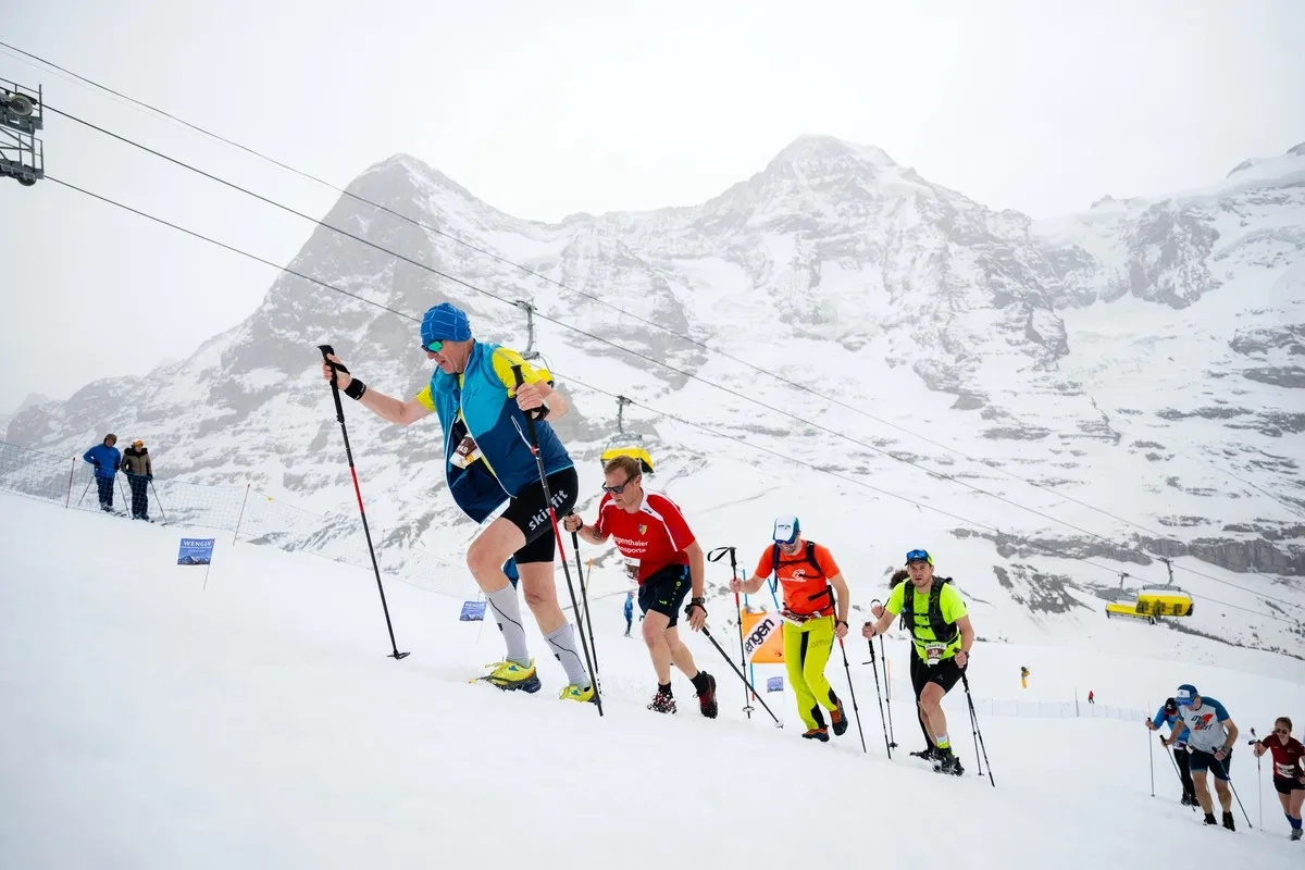 Schnee-Berglauf auf der Lauberhorn-Weltcupstrecke.