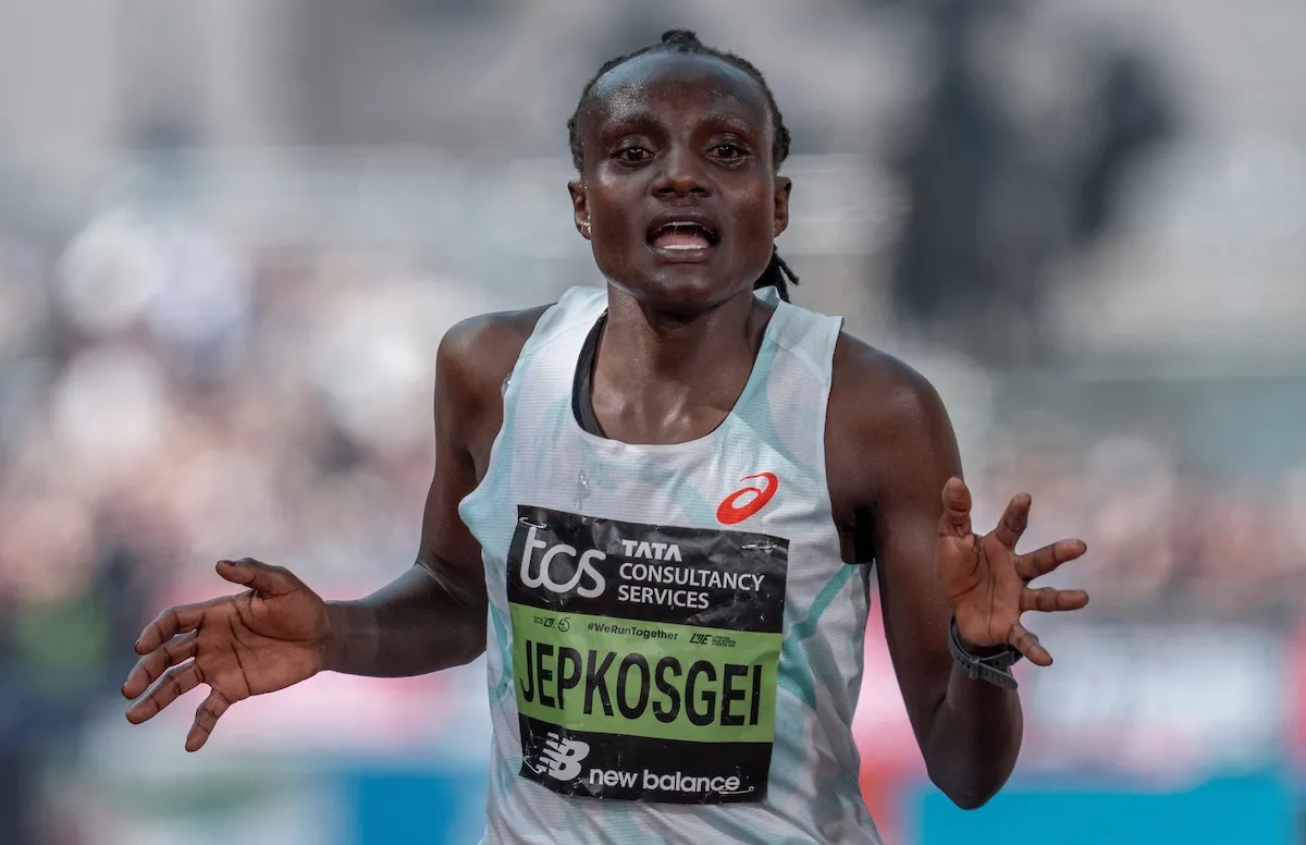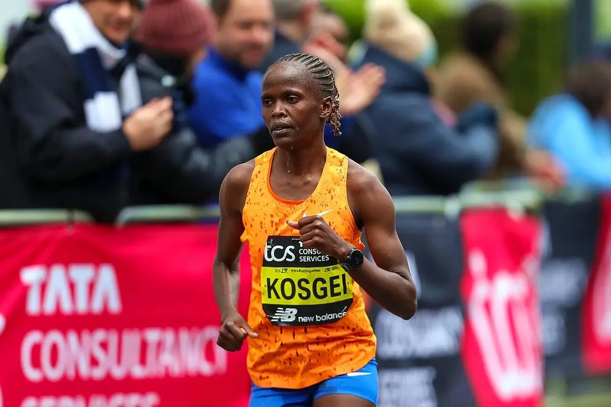 Brigid Kosgei beim London Marathon 2024 (Foto: © Katie Chan, CC BY-SA 4.0, via Wikimedia Commons)