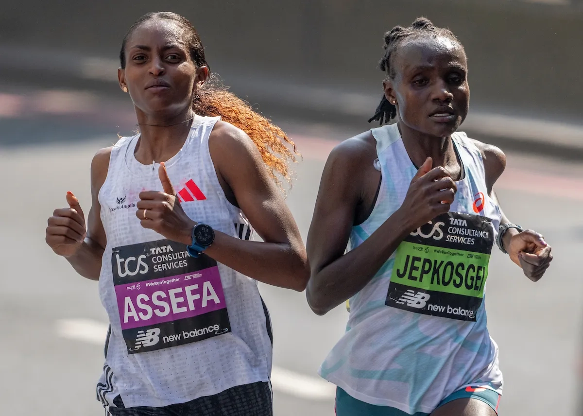 London Marathon 2025: Tigst Assefa (ETH) und Joyciline Jepkosgei (KEN) belegen die Plätze 1 und 2 (Foto: © TCS London Marathon)