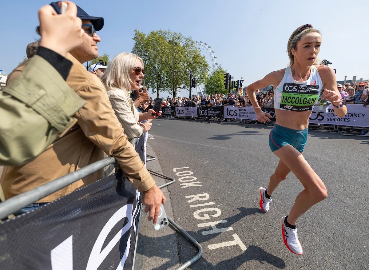London Marathon 2025:Eilish McColgan (GBR) läuft an den Zuschauern auf dem Embankment vorbei  (Foto: © TCS London Marathon)