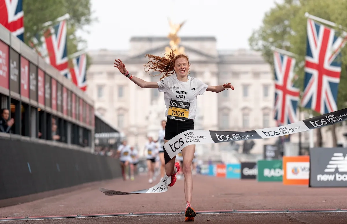London Marathon 2025: Isla McGowan überquert die Ziellinie und gewinnt das Rennen der U17-Mädchen bei den TCS Mini London (Foto: © TCS London Marathon)