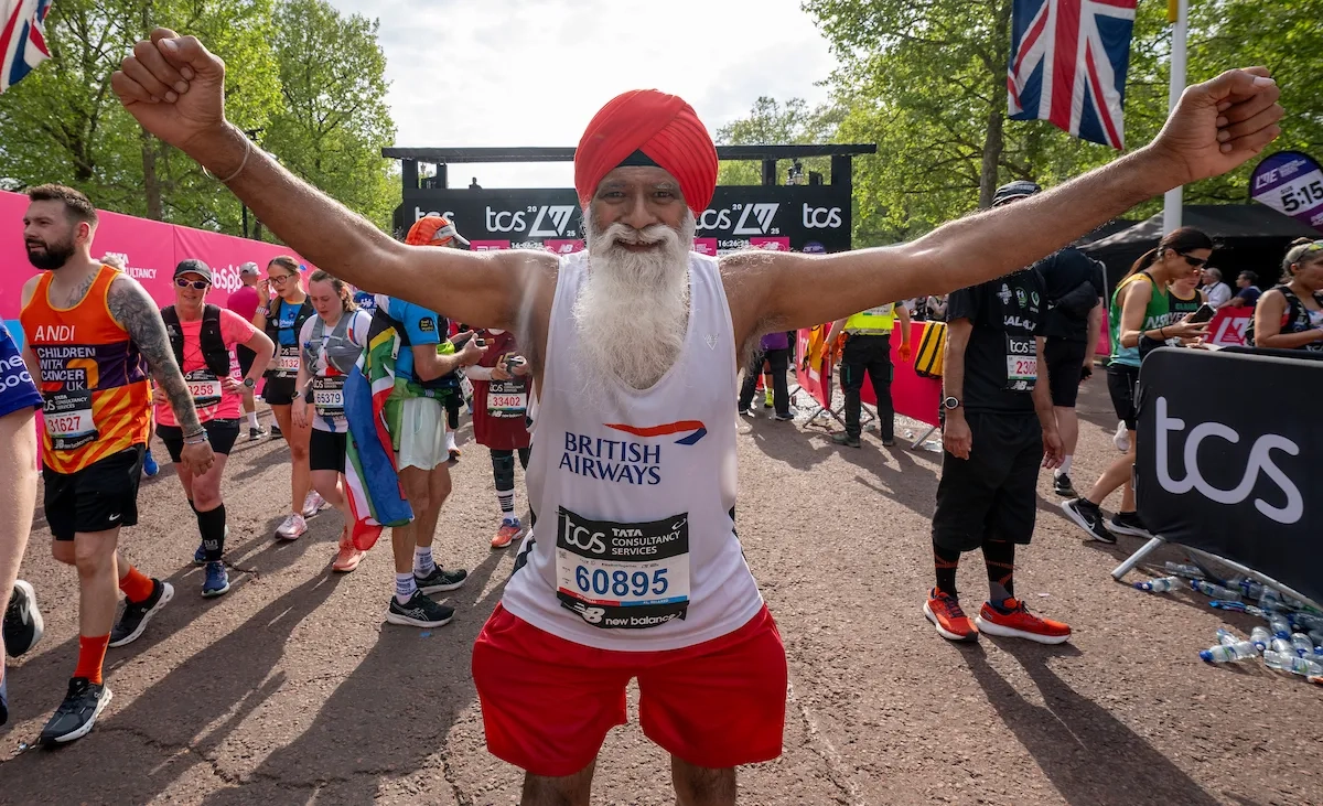 London Marathon 2025: Jasvir Singh Modaher feiert den Zieleinlauf auf der Mall (Foto: © TCS London Marathon)