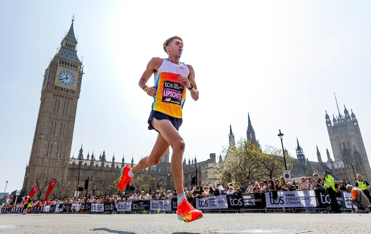 London Marathon 2025: Adam Lipschitz (RSA) passiert den Palace of Westminster (Foto: © TCS LondoN Marathon)