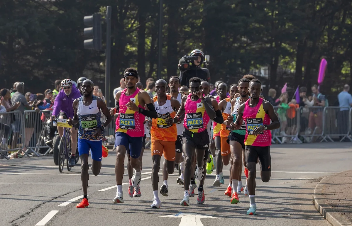 London Marathon 2025: Die Führenden des Elite-Rennens der Männer laufen durch den Süden Londons (Foto: © TCS London Marathon)