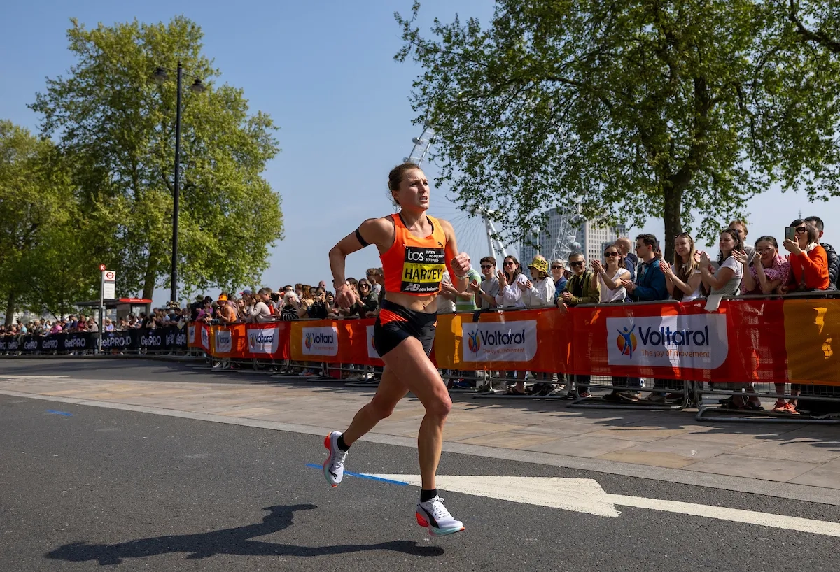 London Marathon 2025: Rose Harvey (GBR) läuft an den Zuschauern auf dem Embankment vorbei (Foto: © TCS London Marathon)