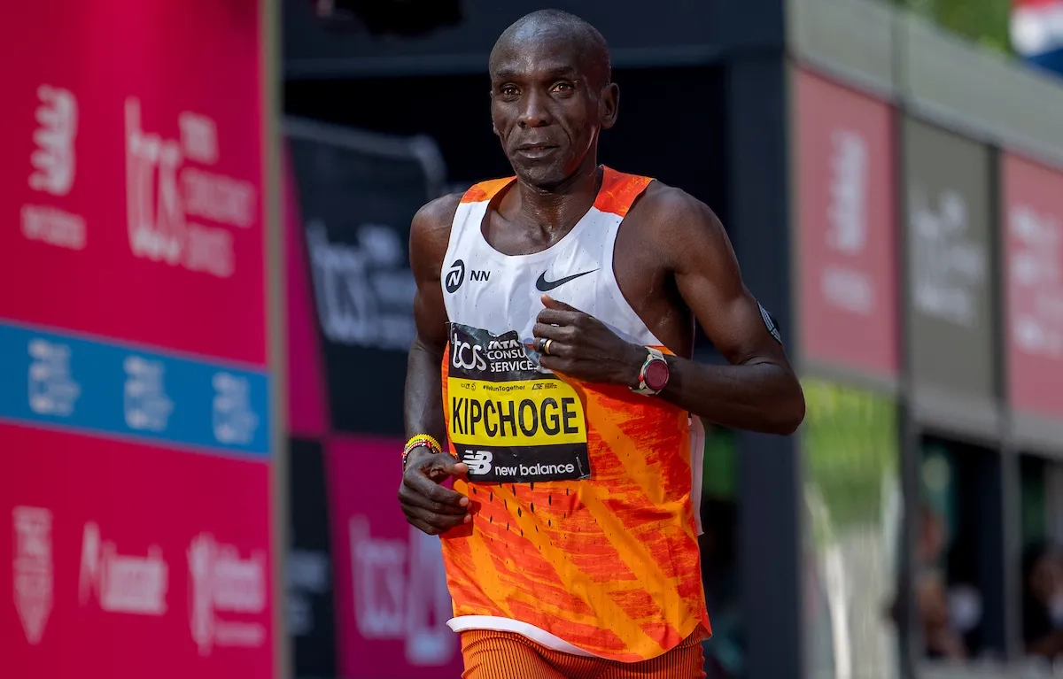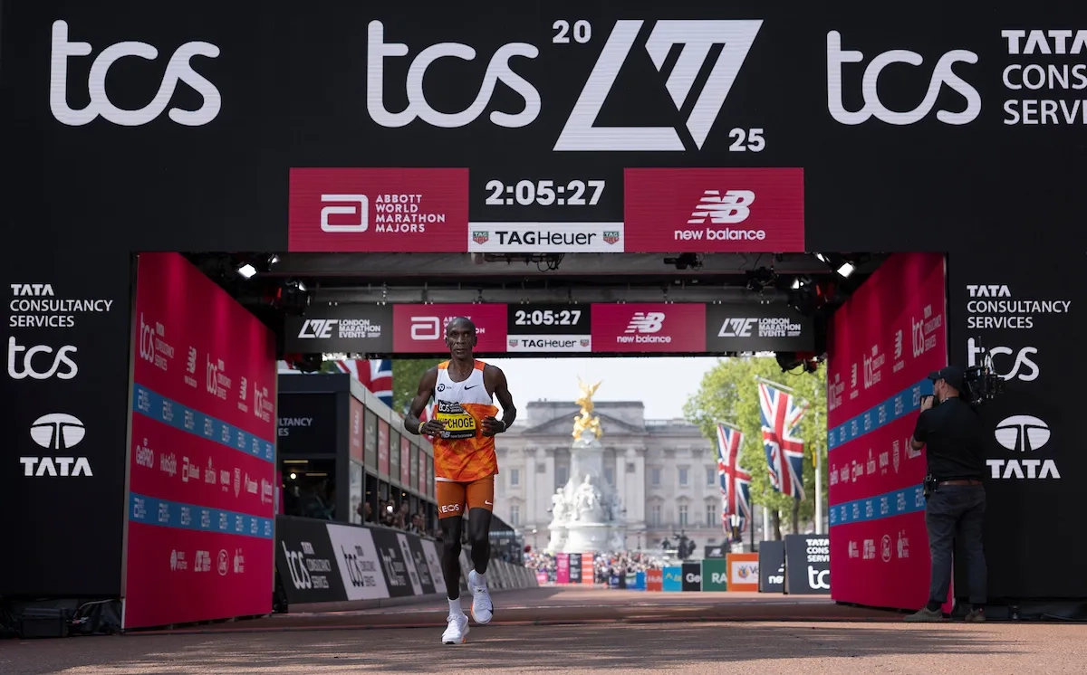 London Marathon 2025: Eliud Kipchoge (KEN) überquert die Ziellinie als Sechster (Foto: © TCS London Marathon)