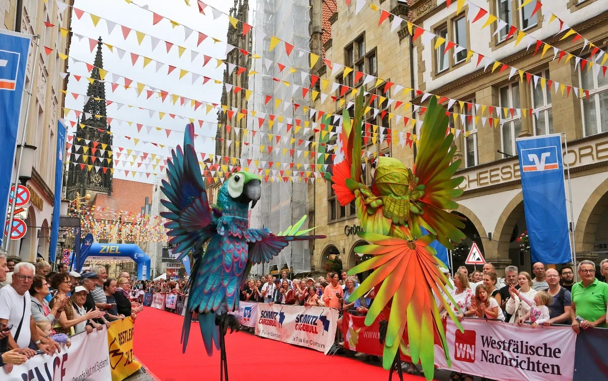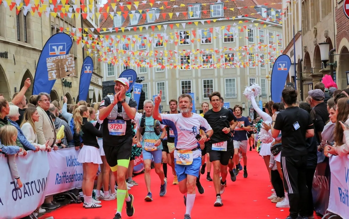 Der Volksbank-Münster-Marathon gehört seit Jahren zu den Highlights für Enthusiasten, für diejenigen Marathonläufer, die Party an der Strecke mögen, die gefeiert werden möchten, die Gänsehautstimmung genießen wollen und einen Zieleinlauf erleben, der in Deutschland seinesgleichen sucht. Umjubelt von zigtausend Zuschauern auf Münsters beflaggtem Prinzipalmarkt und einem roten Teppich sowie Künstlern, die über sich hinauswachsen.
