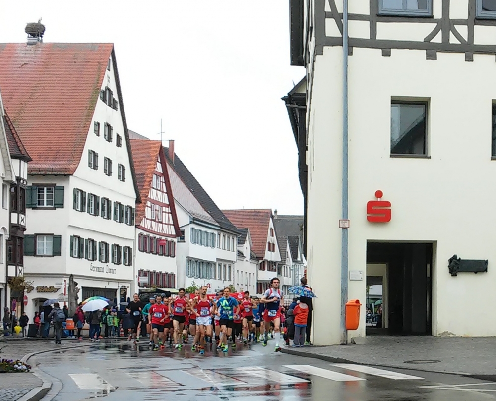 Der Stadtlauf führt vom Marktplatz mitten durch die schöne Riedlinger Altstadt, vorbei an historischen Gebäuden.