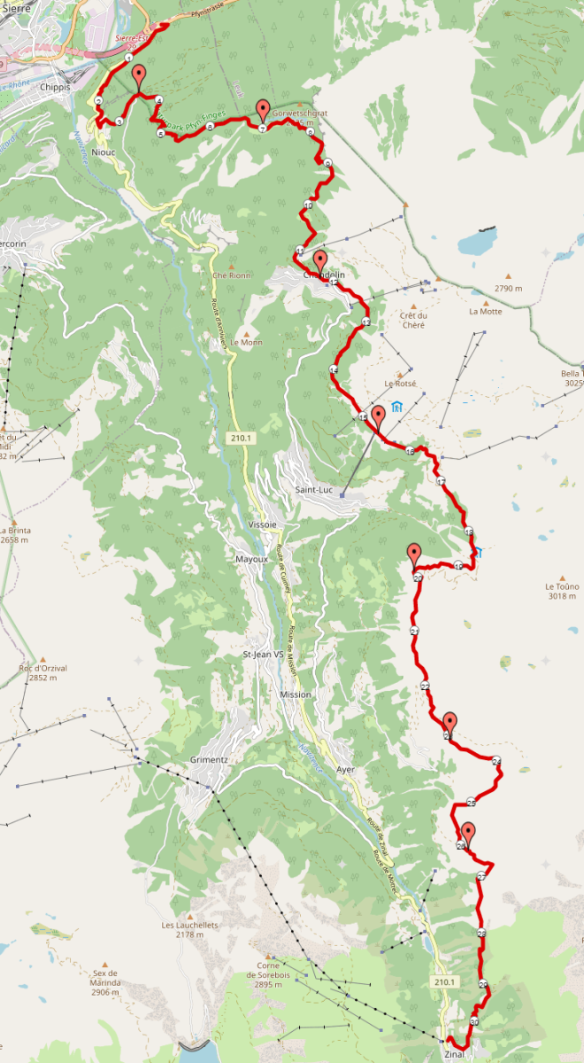 Streckenplan mit Karte und Beschreibung: Strecke Sierre-Zinal