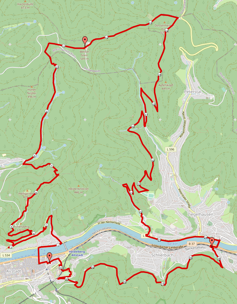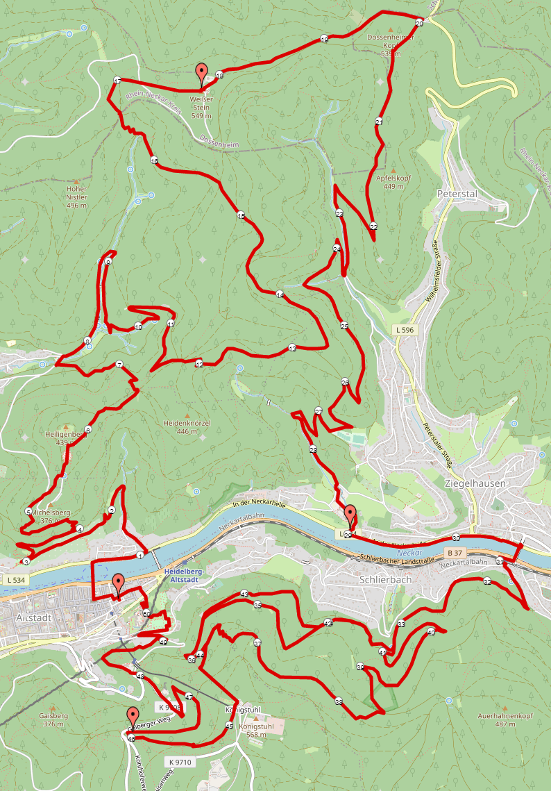 Strecke mit Streckenplan und Beschreibung: Strecke Trail Marathon Heidelberg