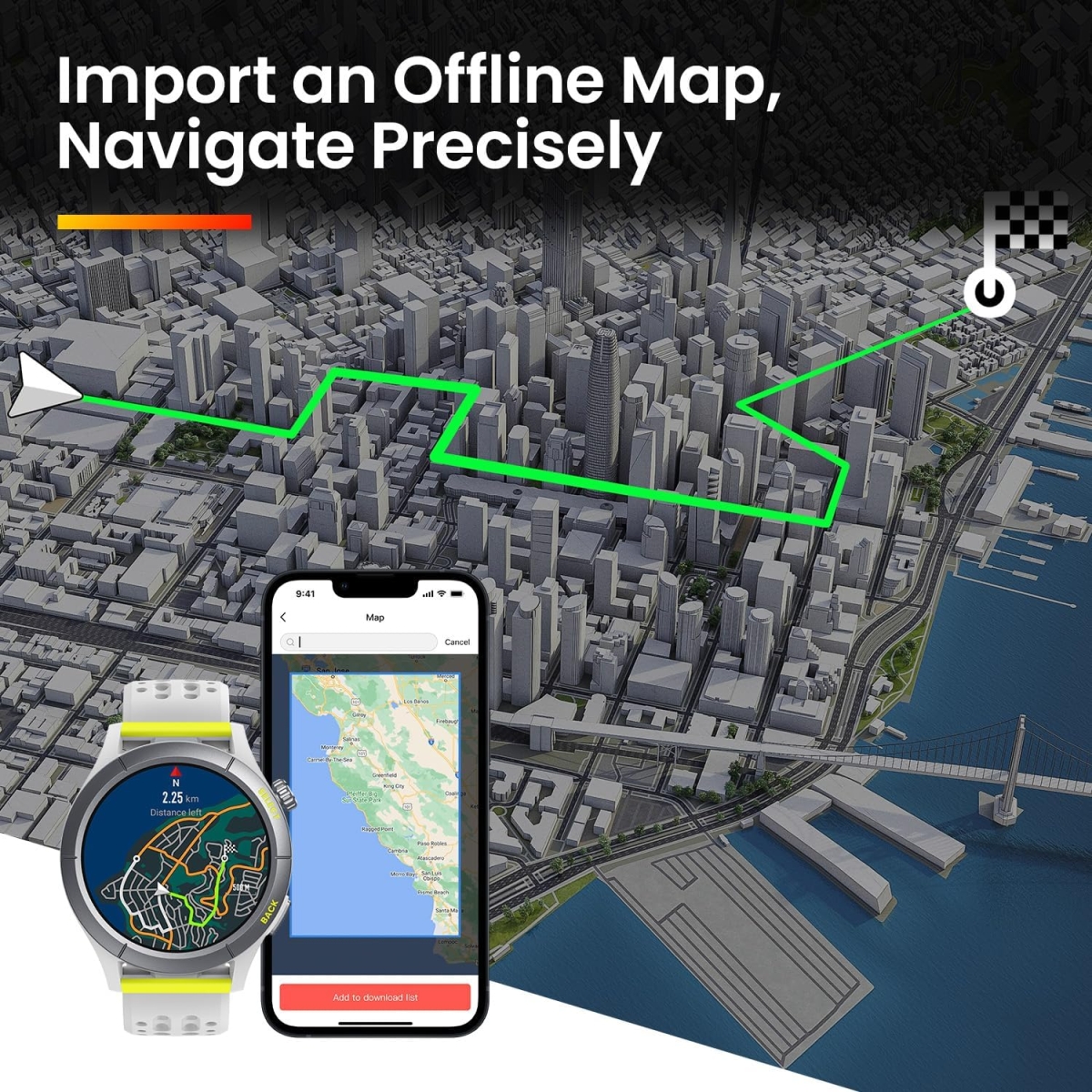 Sie bietet präzise Routennavigation mit Offline-Karten, um den Läufern eine klare Orientierung zu geben.