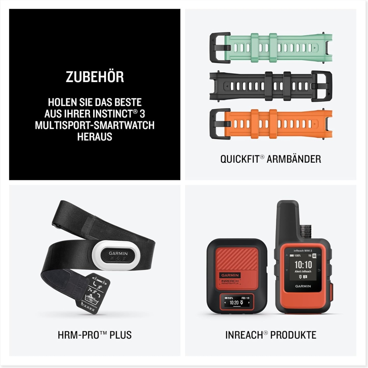 Mit ihrem sportlichen und zugleich robusten Design passt die Garmin Instinct 3 perfekt zu deinem individuellen Stil. Diese Smartwatch ist nicht nur ein praktischer Begleiter, sondern auch ein echtes Statement.