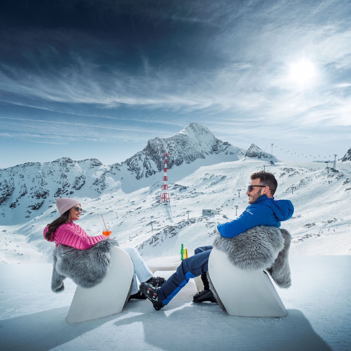 - ICE CAMP presented by Audi: kunstvoll gestaltete Igluwelt aus Eis & Schnee mit Snack Bar und Sonnendeck auf 2.600 m