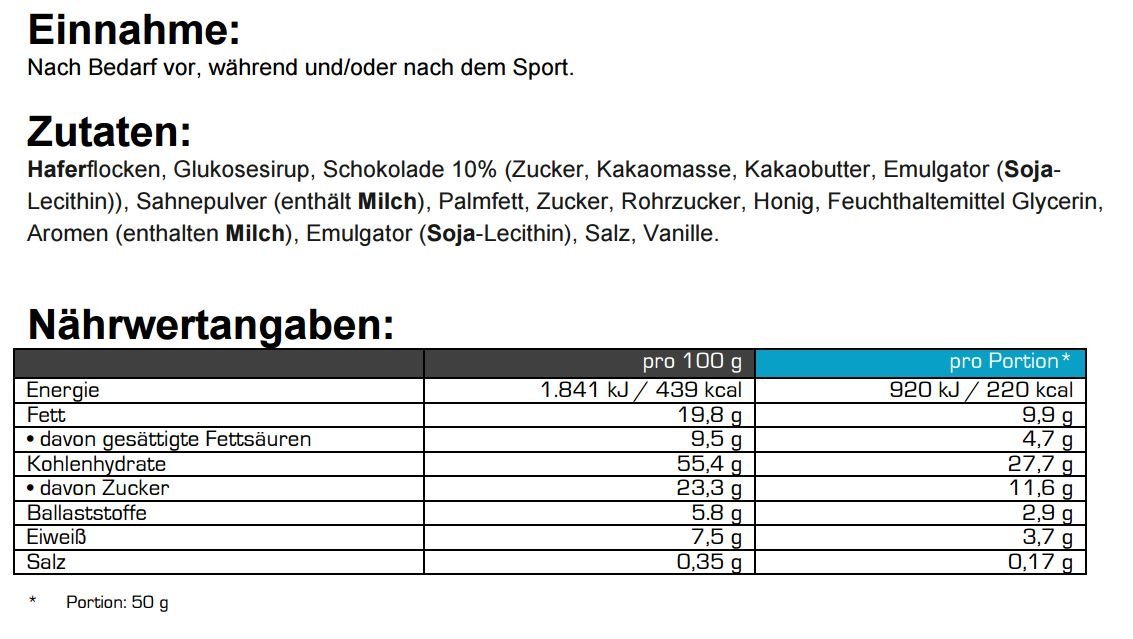 Der Geschmack ist für einen Energieriegel ideal. Schmeckt leicht süß aber keineswegs künstlich.