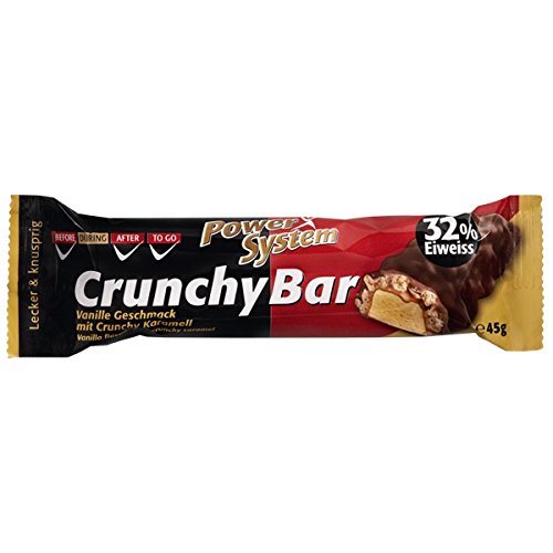 Der reichhaltige Eiweißkern des Power System Crunchy Bar - Protein-RIegel mit zarter Karamellschicht und knuspriger Schokoummantelung - der Eiweißgenuss für die Sinne. Ein medium size Riegel mit 32% hochwertigem Protein.