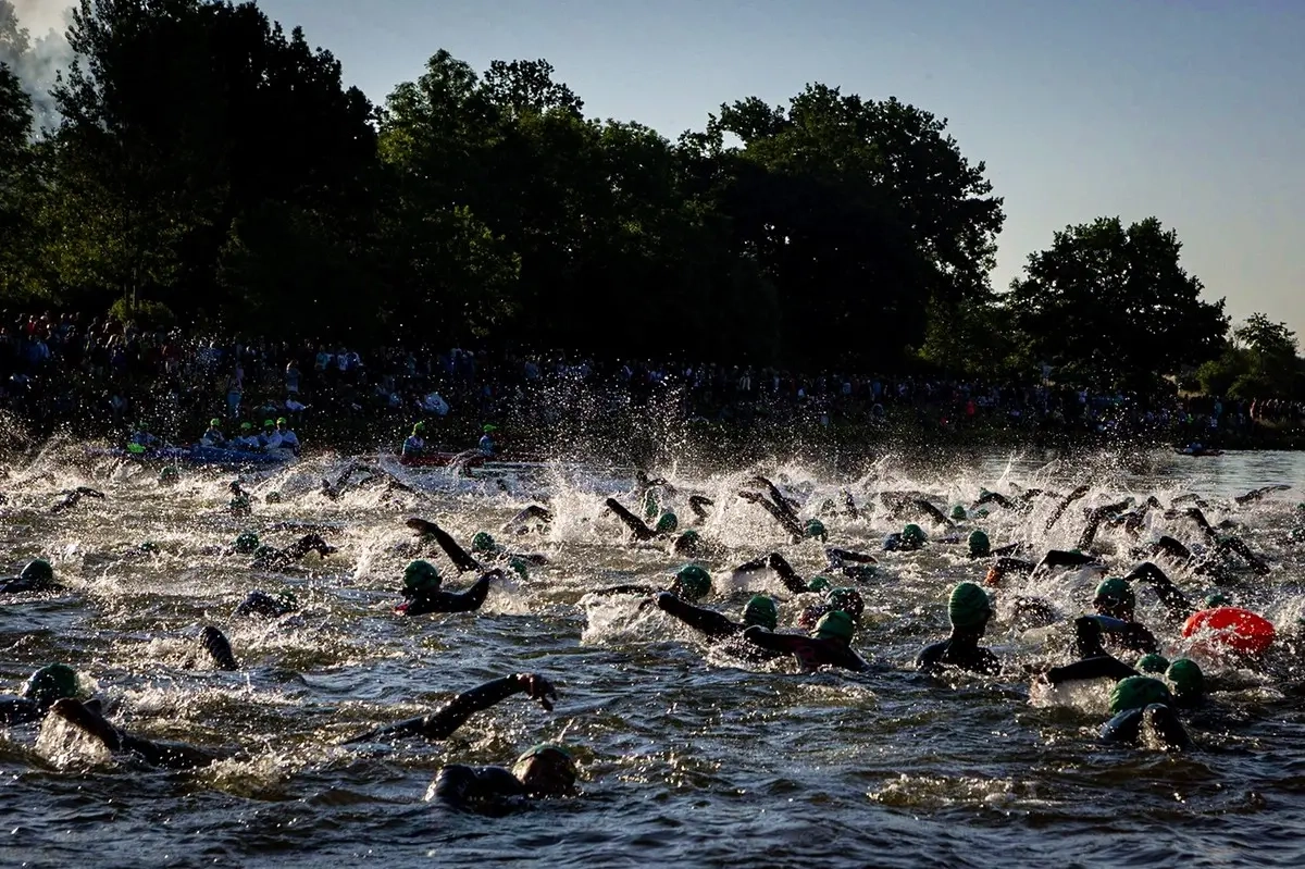 Schwimmstrecke bei der Challenge Roth. (Foto: © Christoph Raithel / Datev Challenge Roth 2023)