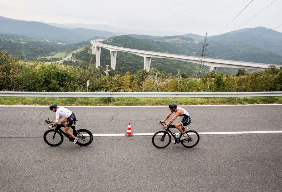 Die 90,1 km lange Radstrecke führt durch zwei Länder – Slowenien und Italien – und lässt die Teilnehmer durch die Altstadt von Koper und die Stadt Ankaran fahren. In Milji (Muggia) überqueren die Sportler die Landesgrenze zwischen Slowenien und Italien und fahren entlang der italienischen Küste. Auf dem Rückweg nach Slowenien führt der Kurs über Osop, eines der ältesten Dörfer Sloweniens mit Steinhäusern und malerischen Straßen. Zwei Anstiege folgen im Hinterland des slowenischen Istriens und der Kurs endet mit einer langen Abfahrt, bei der die Athleten einen herrlichen Blick auf bekannte slowenische Reiseziele wie Koper, Izola und Piran werfen können.