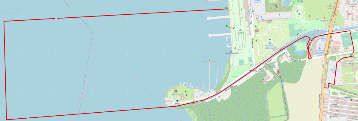 Geschwommen wird geradeaus in den See. Nach 1.500 Metern folgt eine Abzweigung nach links Richtung Strandbad in Maiernigg. Der Schlusskilometer führt durch den Lendenkanal. In der Bucht des Seepark-Hotels erfolgt der Ausstieg.