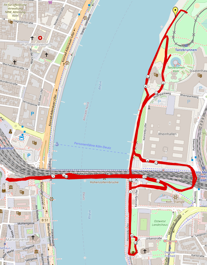 Die Strecke führt u.a. durch die Innenstadt von Köln.